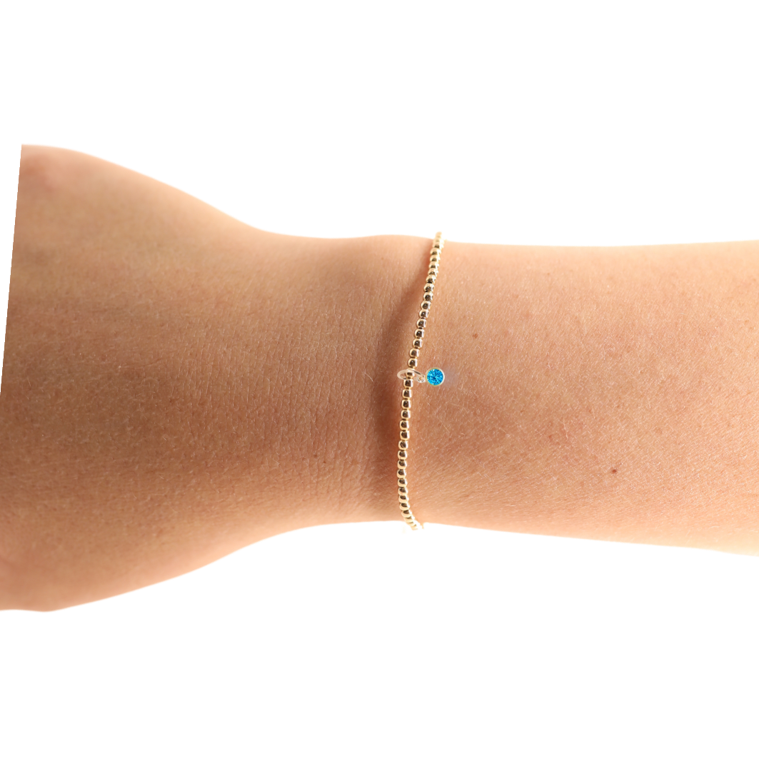2MM gold beaded stretch bracelet with birthstone charm.