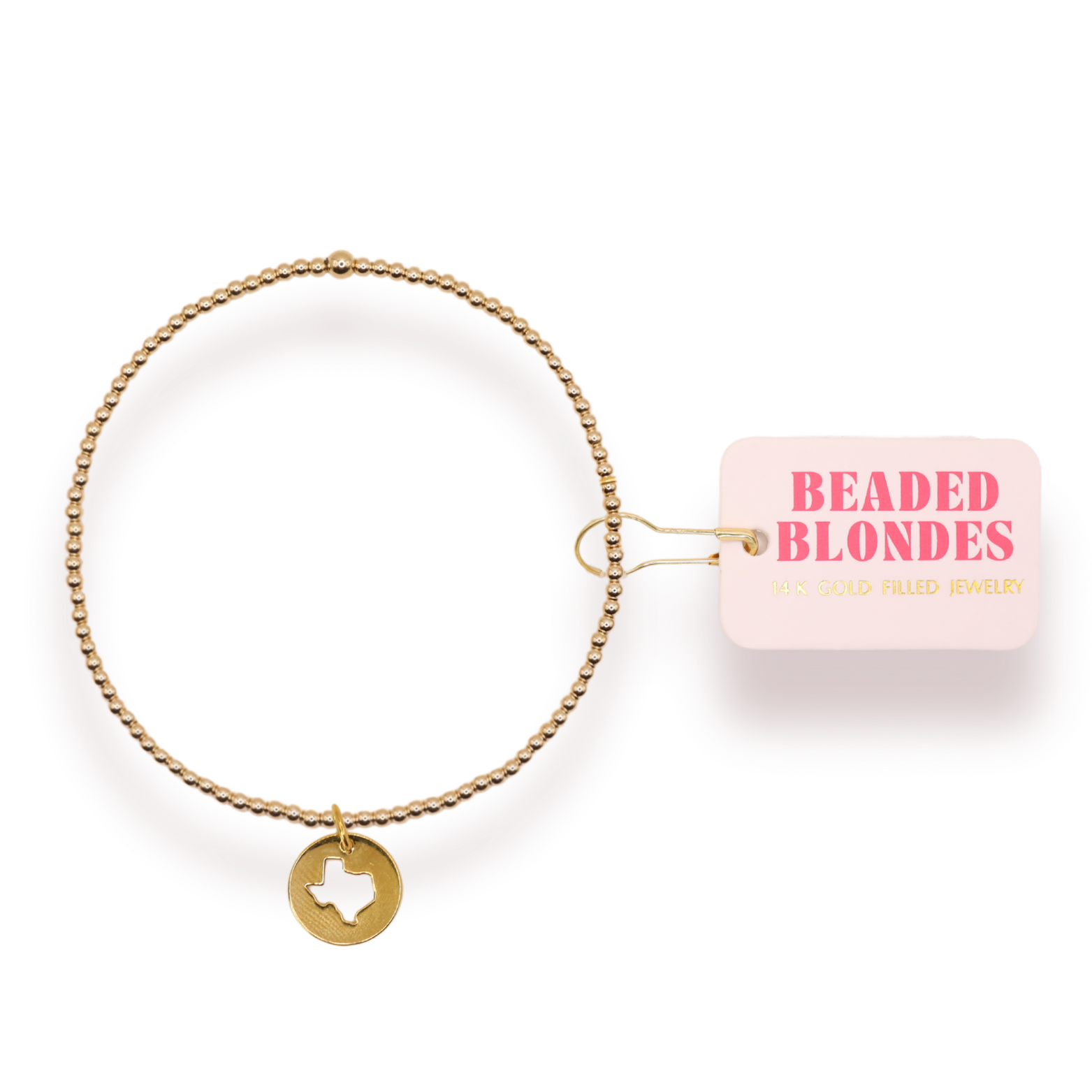 2MM gold beaded stretch bracelet with gold Texas Coin charm.