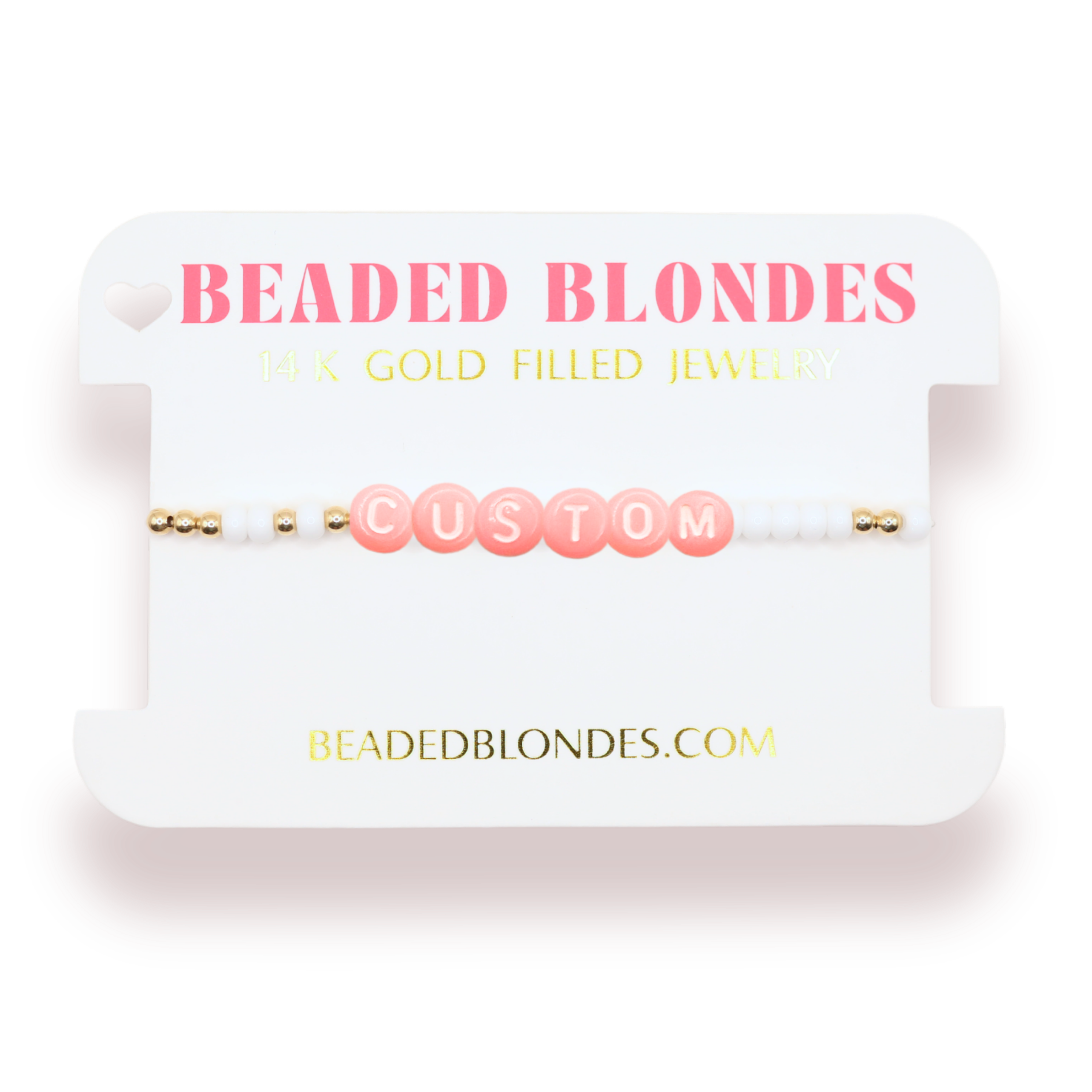 Customize to your own word or phrase with this dreamy pastel pink letter bracelet.