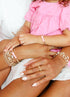 Beaded Blondes offers styles with freshwater and synthetic pearls for timeless elegance. Swarovski pearls feature a crystal core with a durable coating that mimics natural pearls but still require gentle care. Read for full care instructions here.