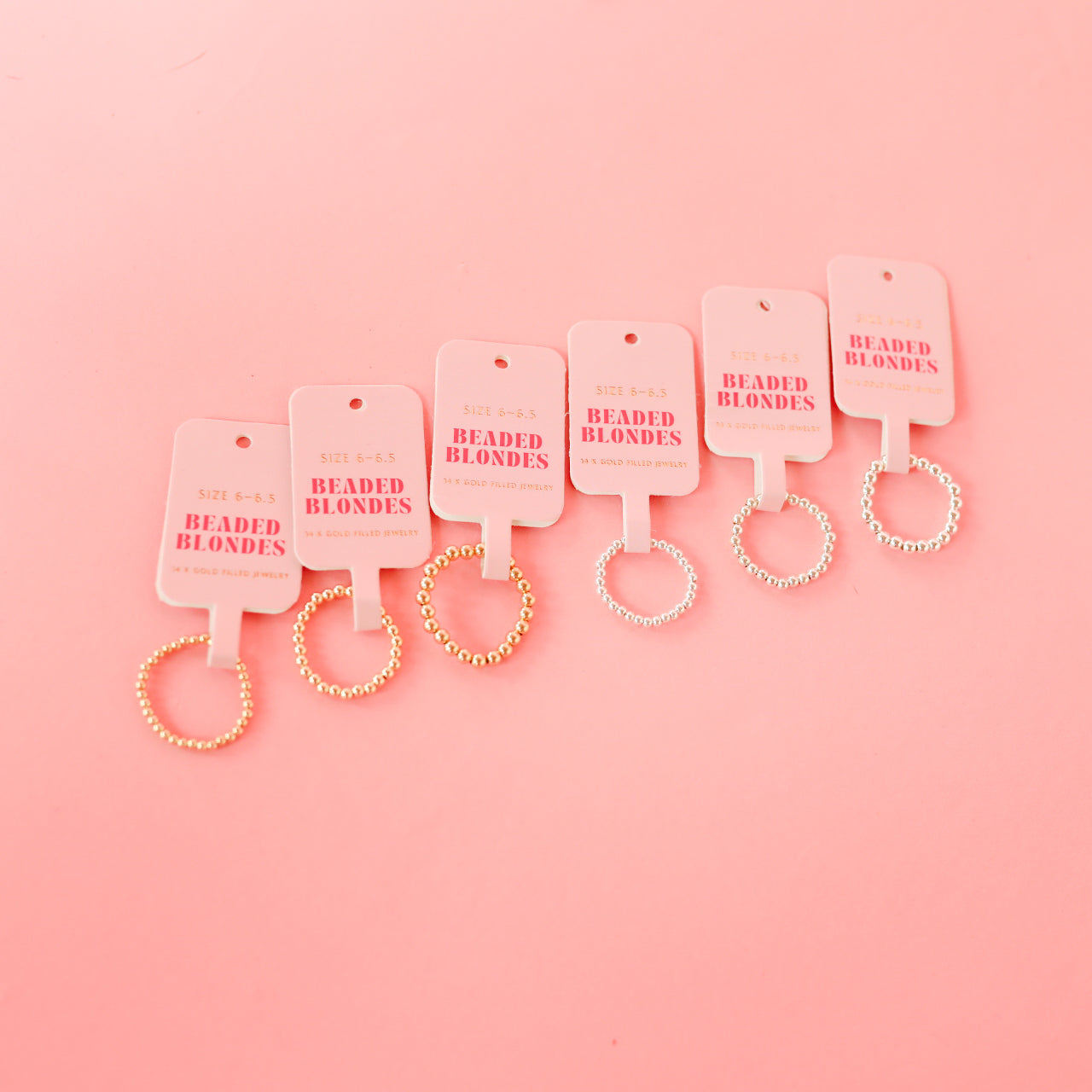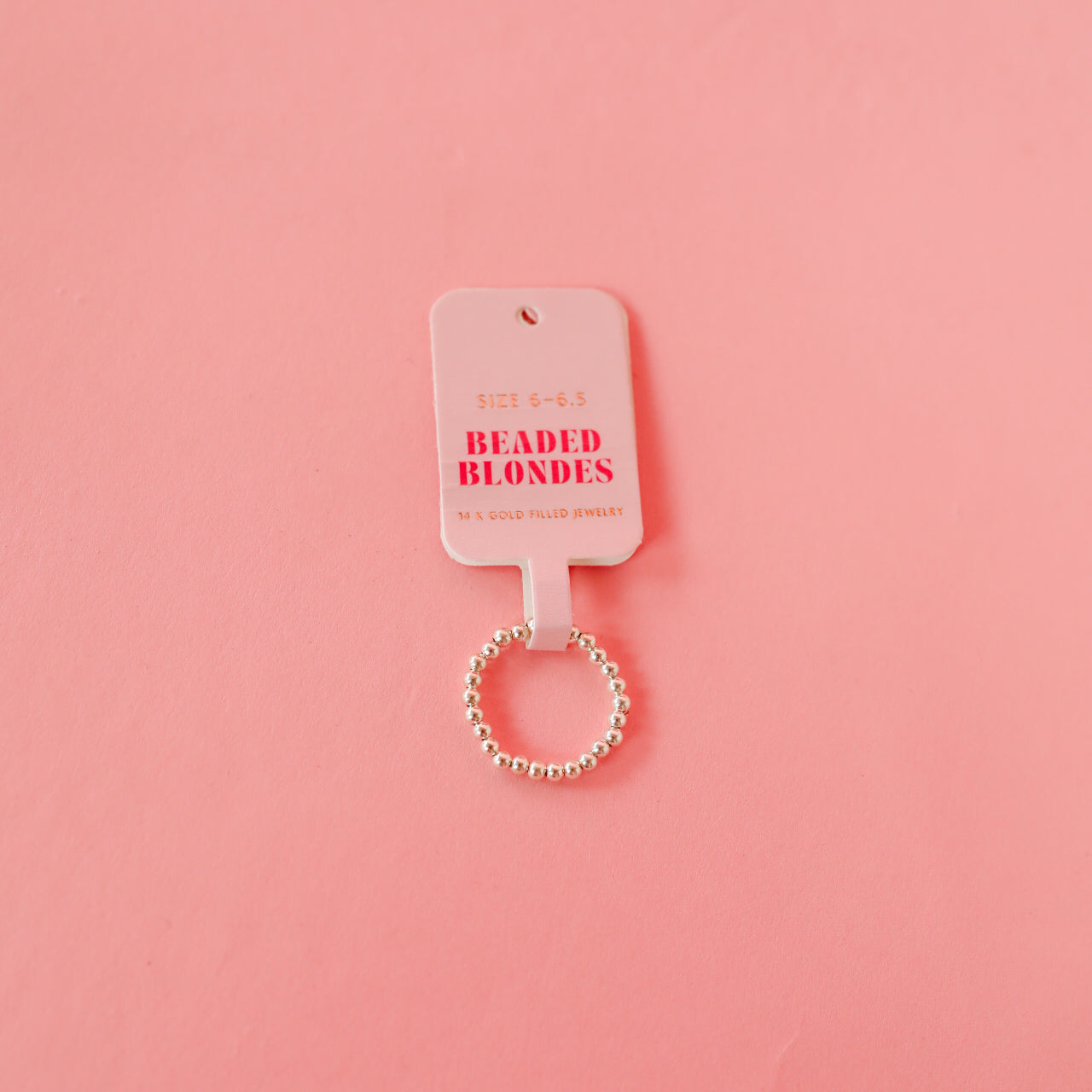Our dainty silver Beaded Bands™ are an elastic ring perfect to wear alone or to be stacked with your class ring or other statement rings.