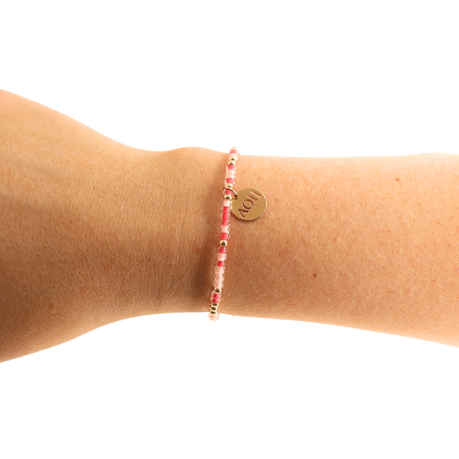 - 2MM gold stackable beaded bracelet with sorority charm.