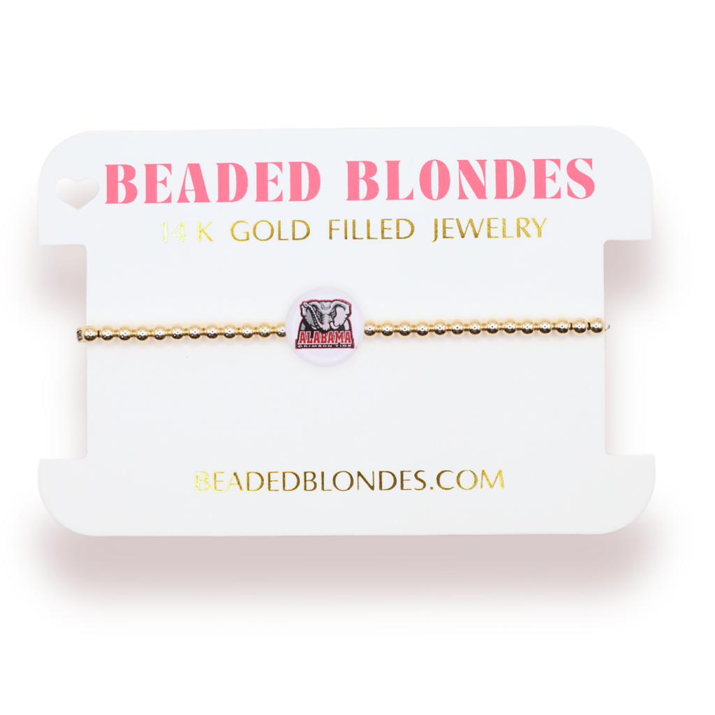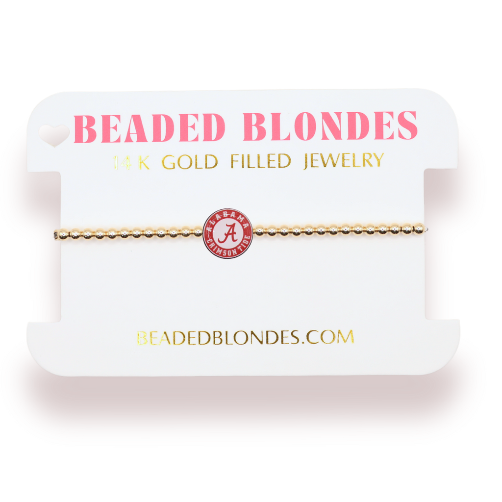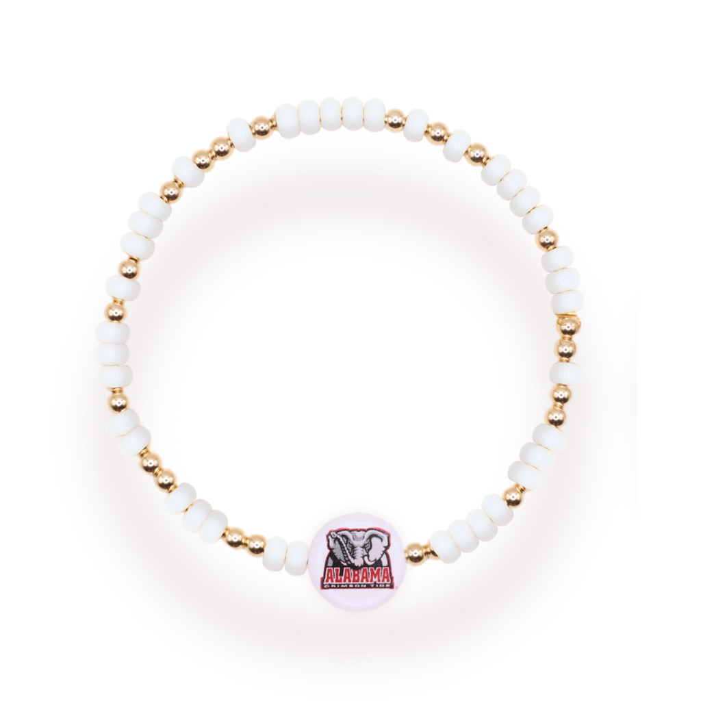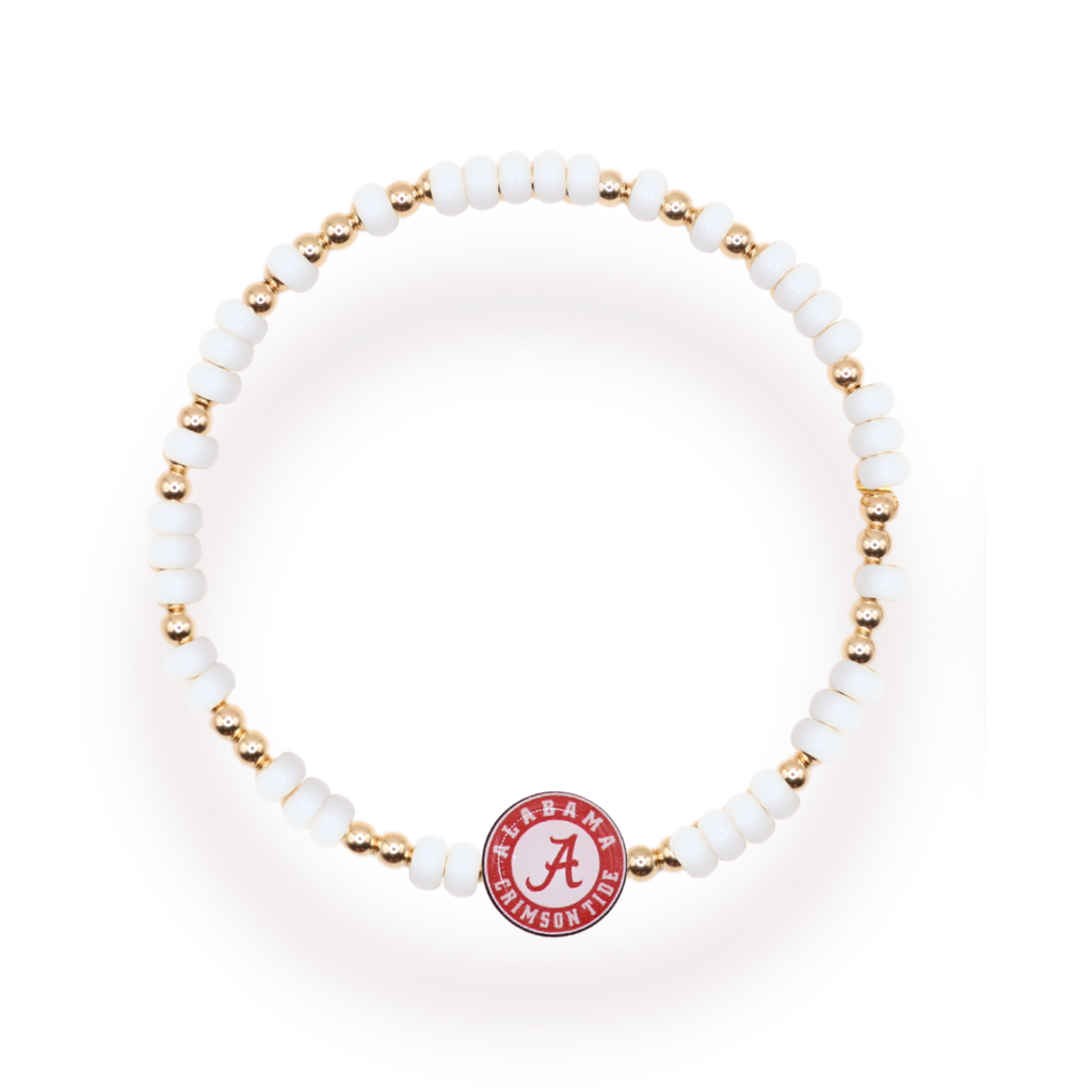 Get ready to support your favorite team in style with the Alabama Bead Bracelet! Perfect for game day, this bracelet features unique Alabama-themed beads that will be sure to catch everyone's eye. Show off your team spirit and accessorize like a true fan!