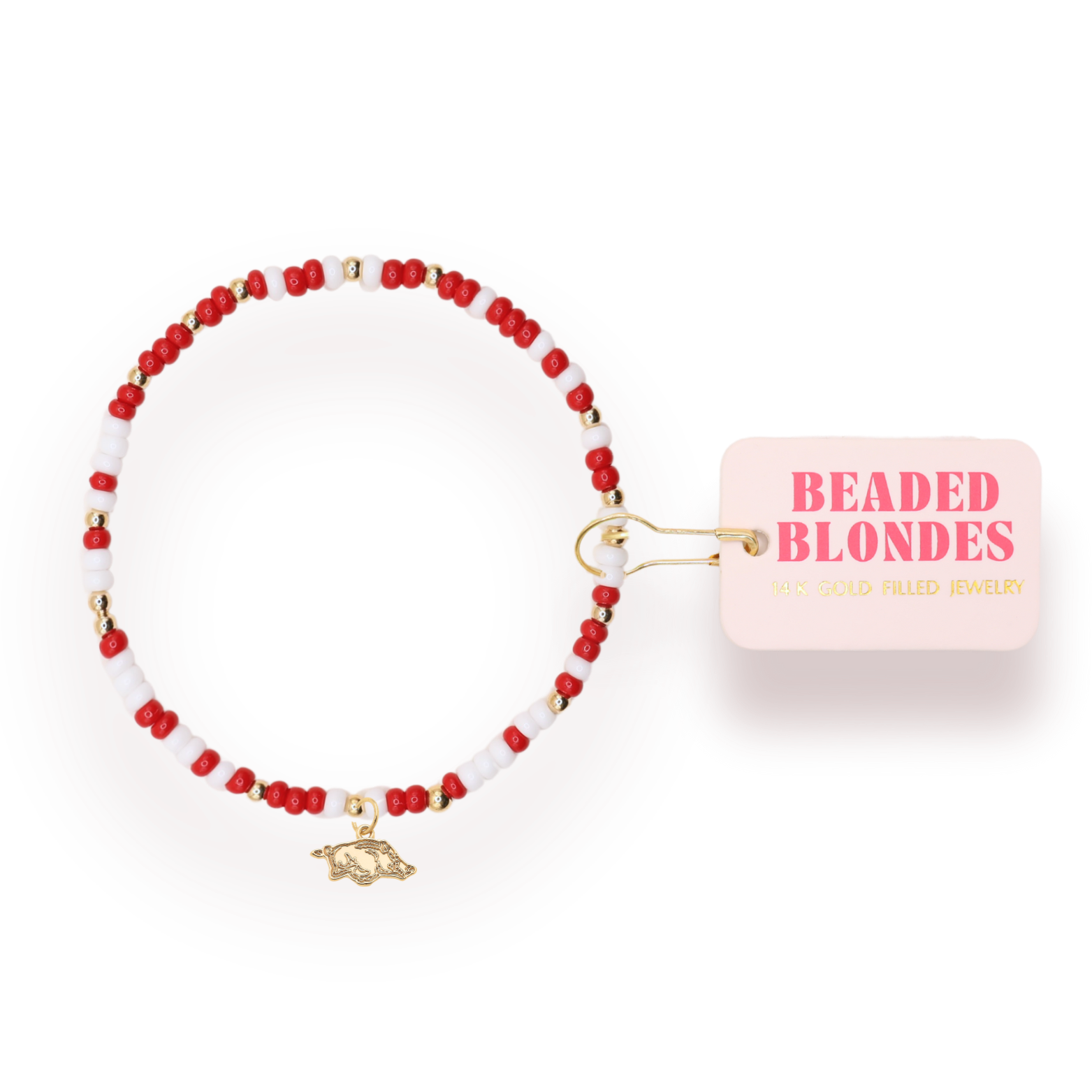 Show your school spirit in style with this colorful Czech glass beaded bracelet accented by 2.5MM 14k gold-filled beads and a sleek gold charm! Whether you’re cheering from the stands or celebrating a win, this bracelet adds the perfect touch of game day shine. Made with high-quality gold-filled beads and a durable stretch fit for easy, comfortable wear.