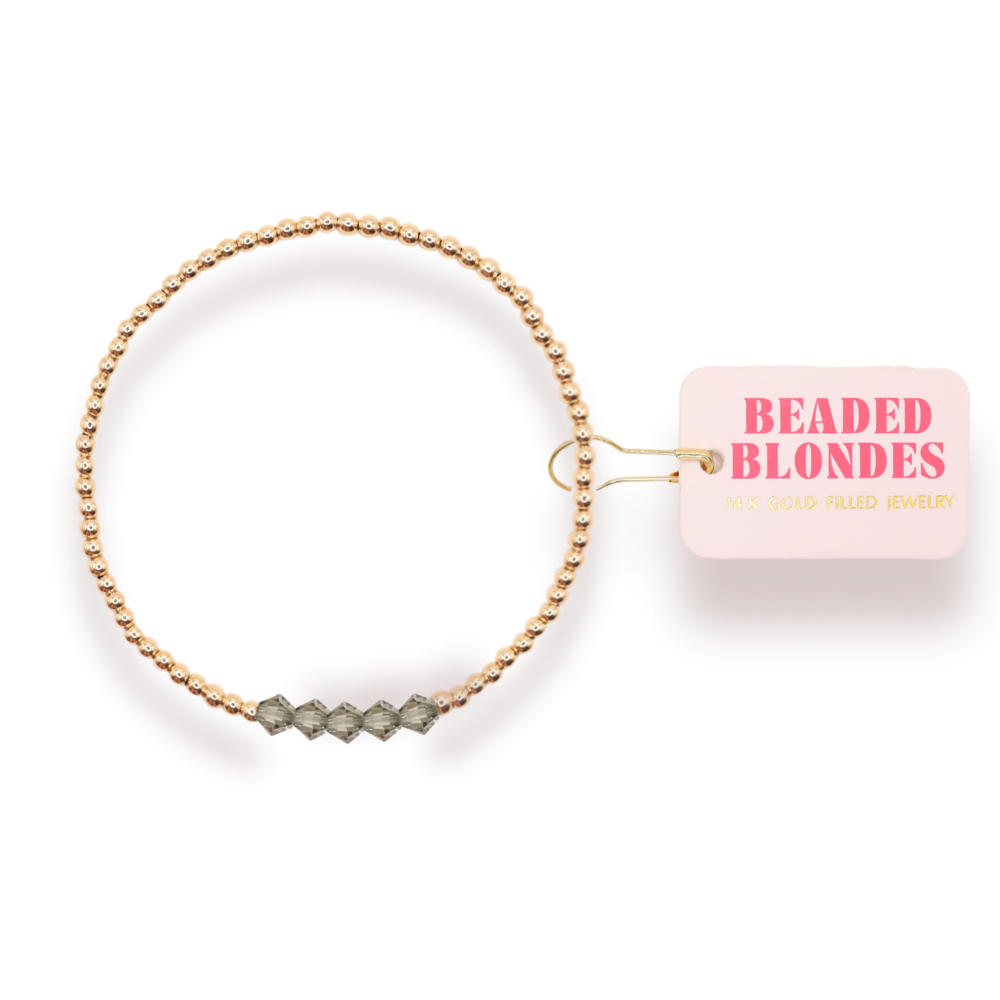 The Kim Swarovski Bracelet is a mix of 2.5MM gold beads + 5 swarovski beads.