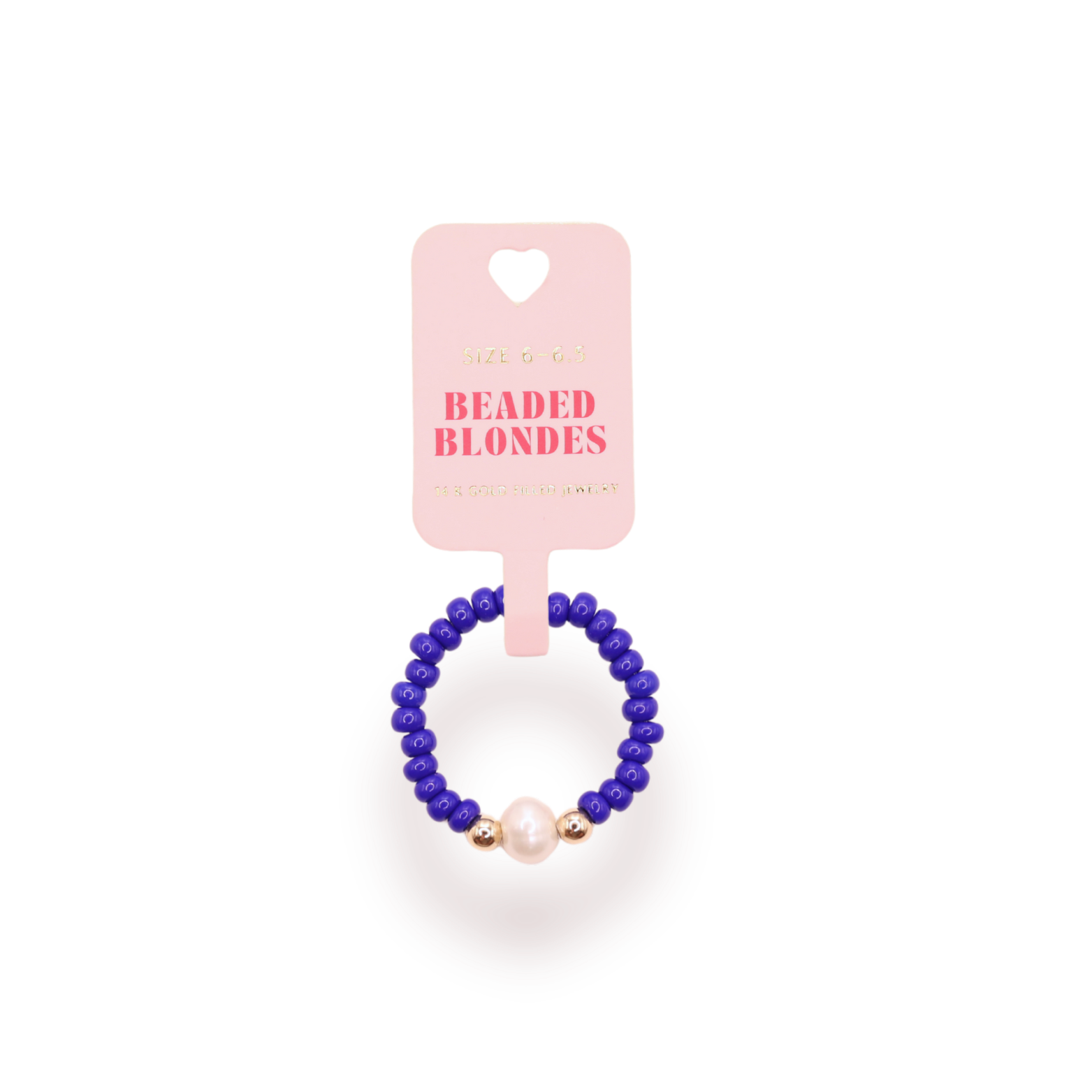 The pearl ring is a mix of 3mm gold, czech glass beads & a freshwater pearl. This is a stretch ring.