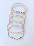 3MM beaded stretch letter bracelet. Material: 14 K gold filled or sterling silver 3mm beads with alphabet letter beads and durable elastic string.