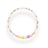 Material: 14 K gold filled beads, an acrylic letter bead and durable elastic string so perfect for everyday wear! Sweat proof, water proof and tarnish free!