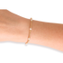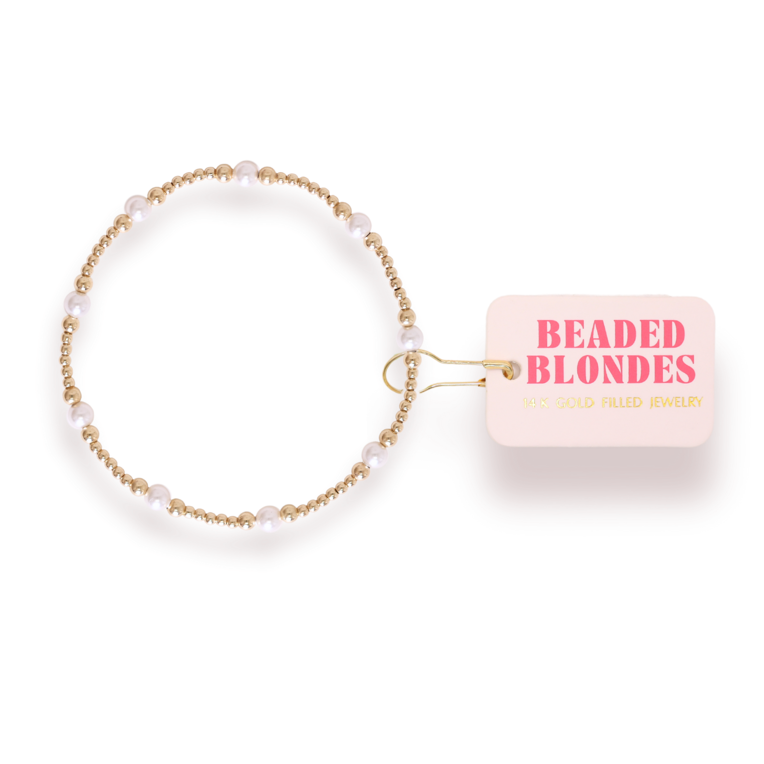 2MM gold bracelet with 3MM & 4MM cascading gold & pearl design.
