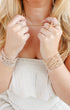 Beaded Blondes offers styles with freshwater and synthetic pearls for timeless elegance. Swarovski pearls feature a crystal core with a durable coating that mimics natural pearls but still require gentle care. Read for full care instructions here.