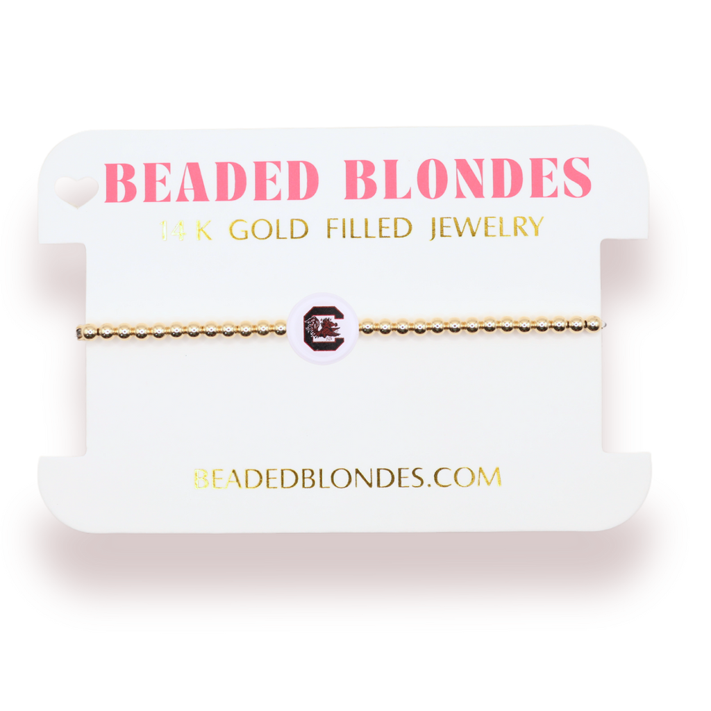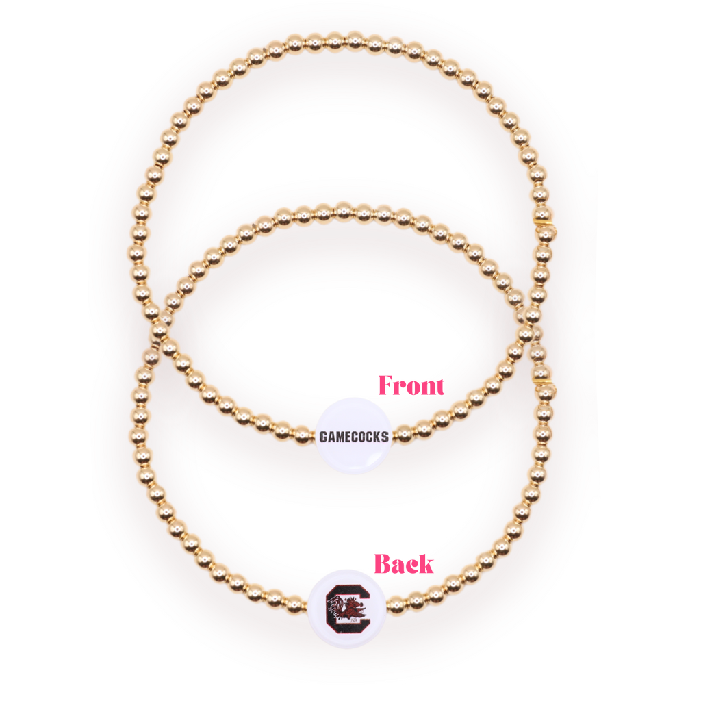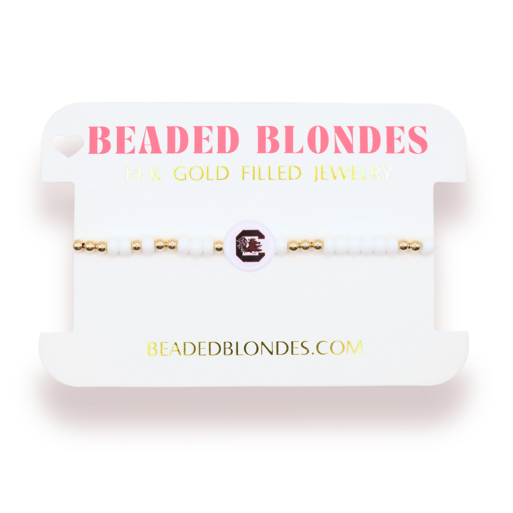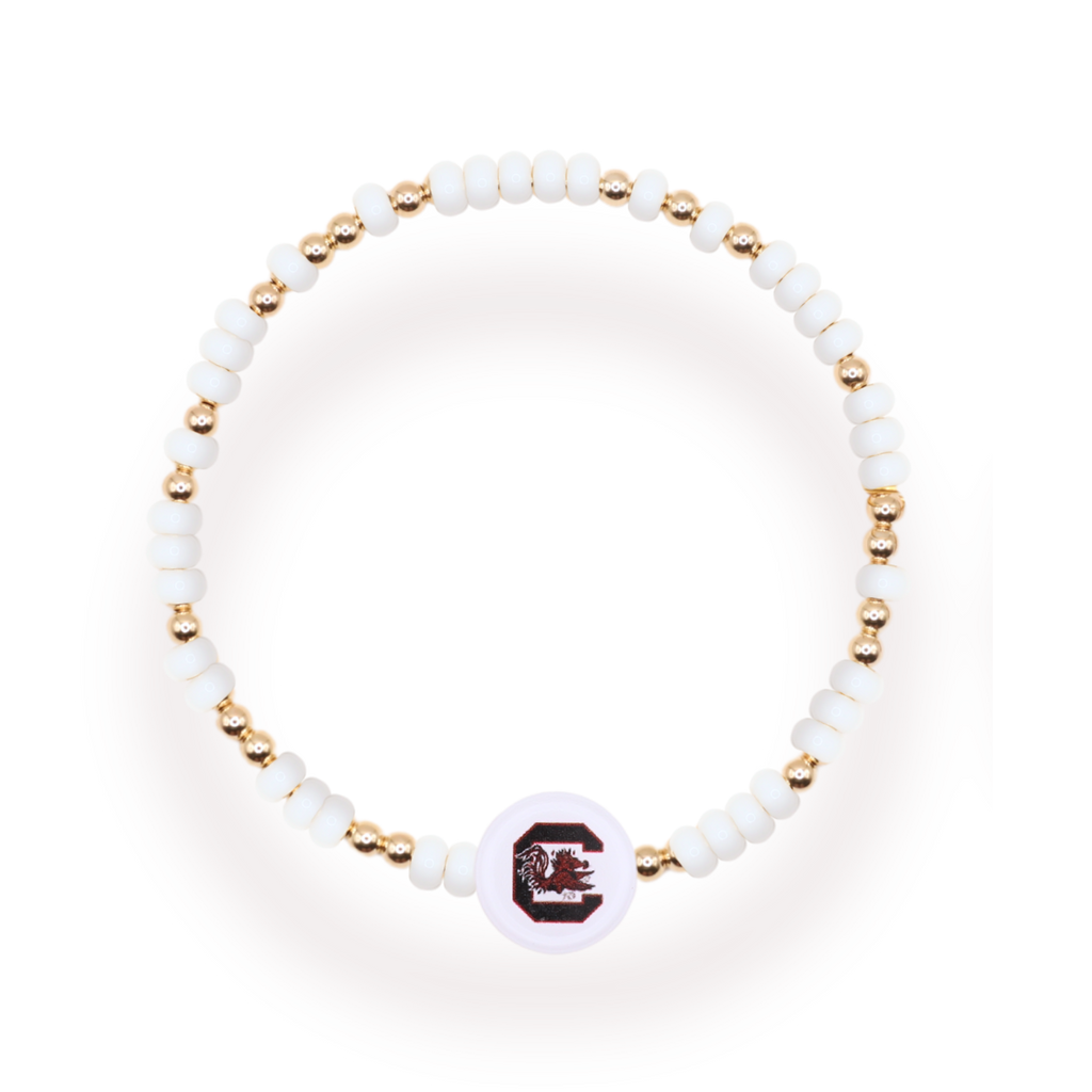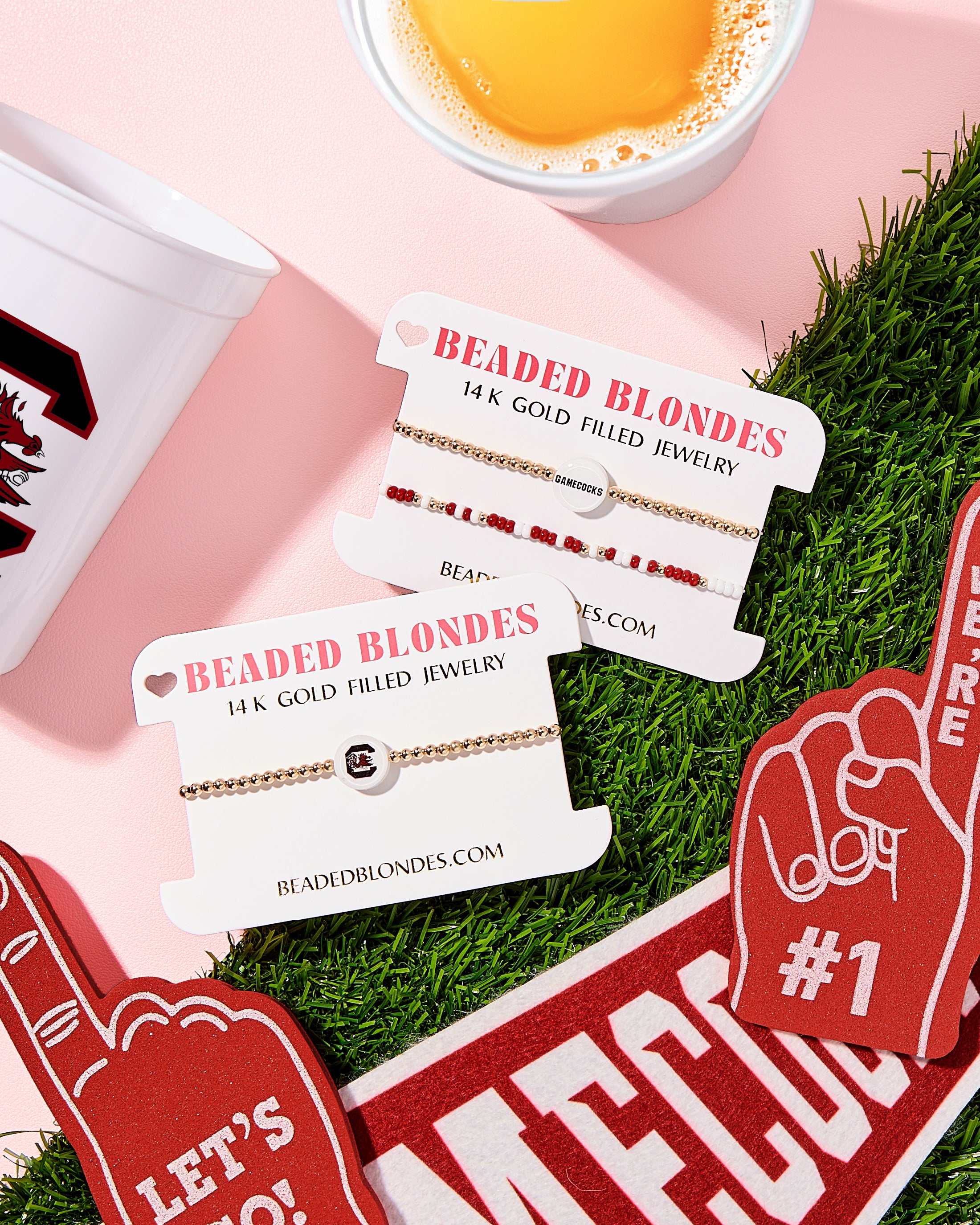 Get ready to support your favorite team in style with the Gamecocks Bead Bracelet! Perfect for game day, this bracelet features unique Gamecocks-themed beads that will be sure to catch everyone's eye. Show off your team spirit and accessorize like a true fan!
