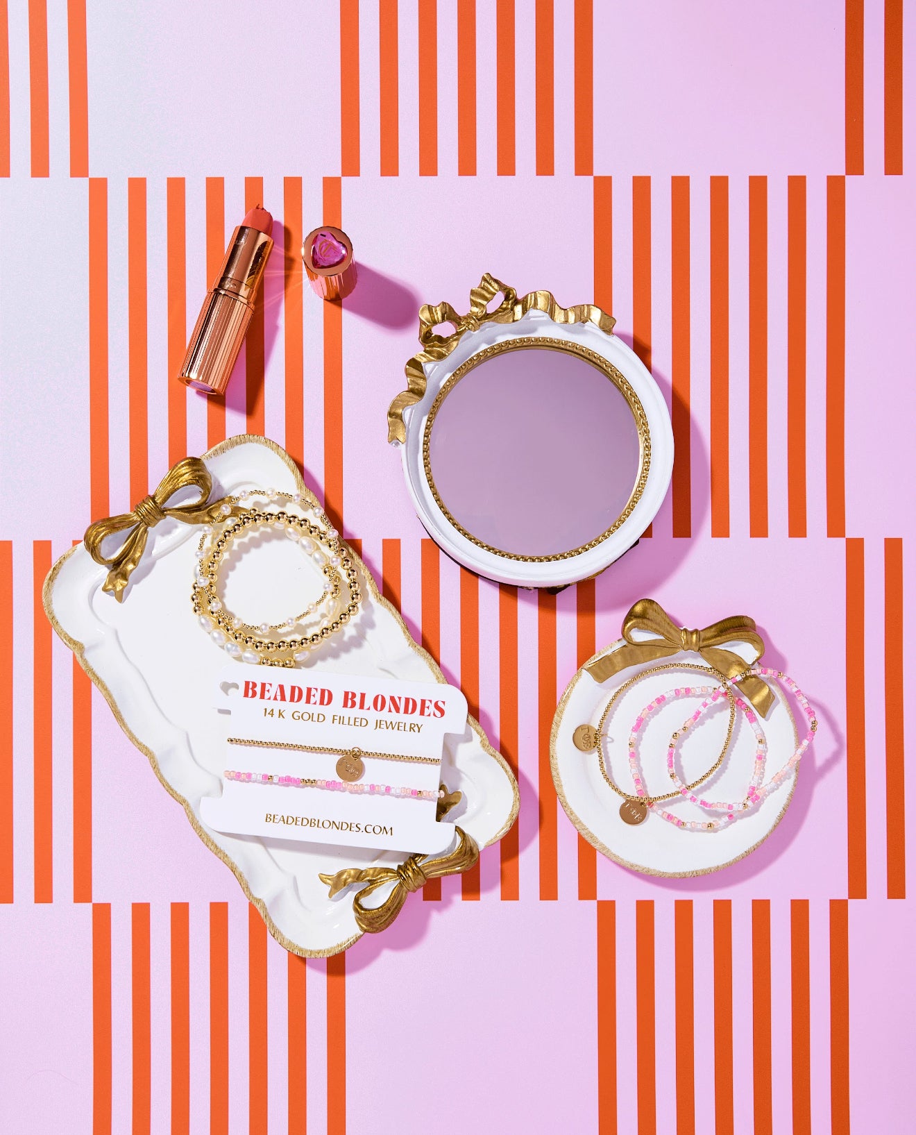 Beaded Blondes gold jewelry is made with 14K gold-filled beads that is waterproof, workout proof & perfect for everyday wear. To preserve its shine, avoid harsh chemicals and gently clean with a soft cloth.