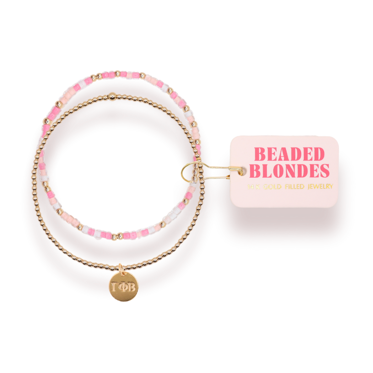 - 2MM gold stackable beaded bracelet with sorority charm.