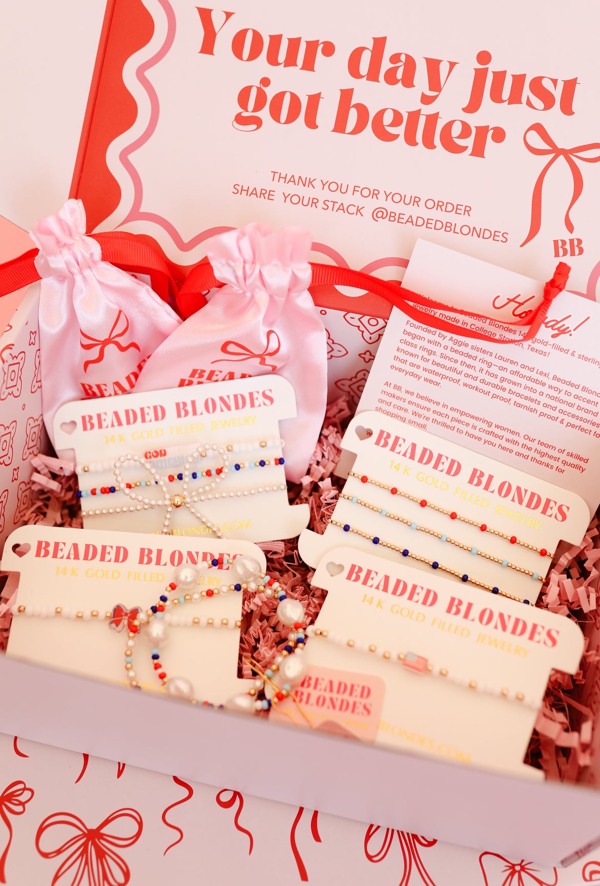 Beaded Blondes gold jewelry is made with 14K gold-filled beads that is waterproof, workout proof & perfect for everyday wear. To preserve its shine, avoid harsh chemicals and gently clean with a soft cloth.