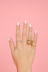 The holiday cheer sprinkle ring is a mix of 2.5mm & czech glass beads. The pattern varies on each ring making it unique.