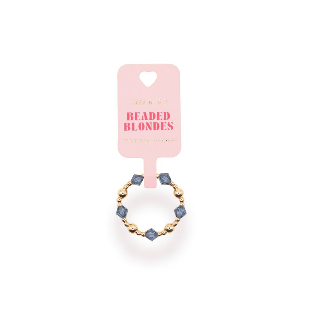 The June Swarovski ring is a mix of 2MM & 4MM gold beads + swarovski beads.