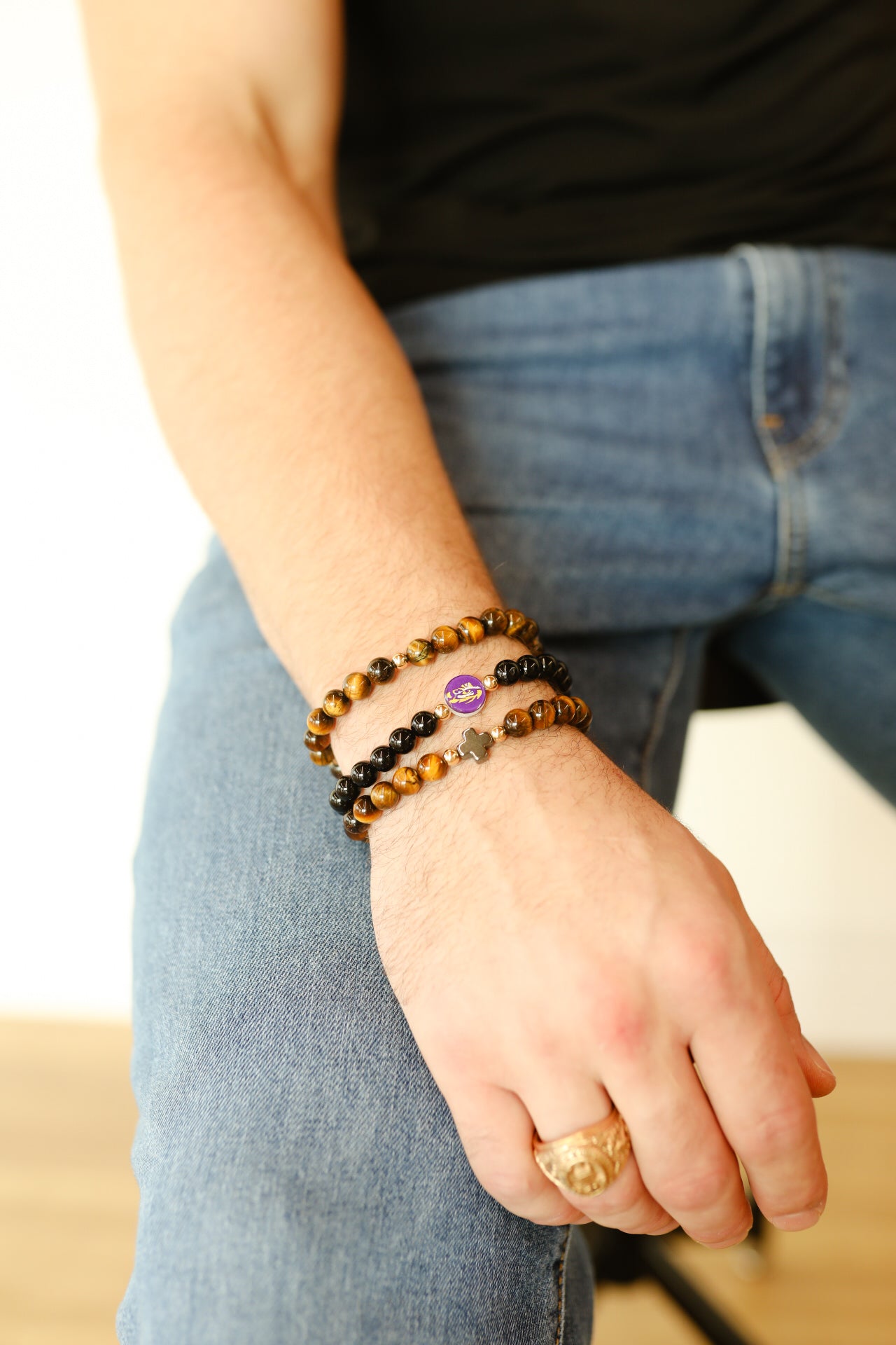 J. Mark's LSU Black Onyx Bracelet. This mens beaded bracelet features a two sided acrylic bead perfect for game day.