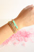 • 3MM gold beaded stretch bracelet with an acrylic bead that will not fade.