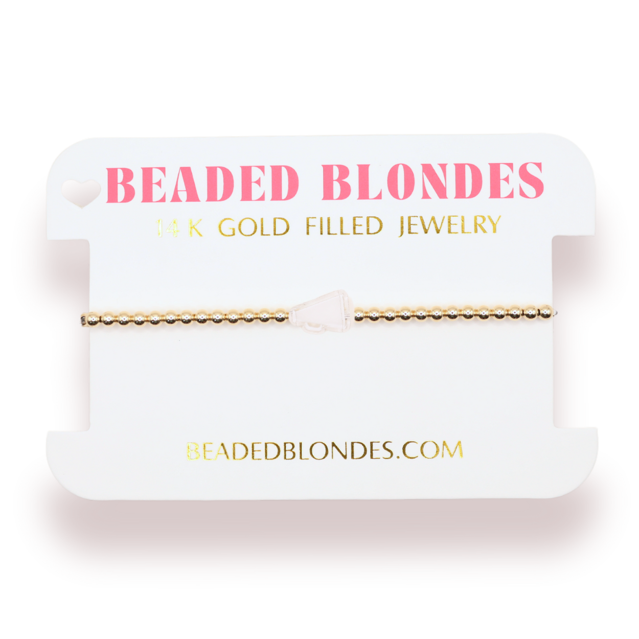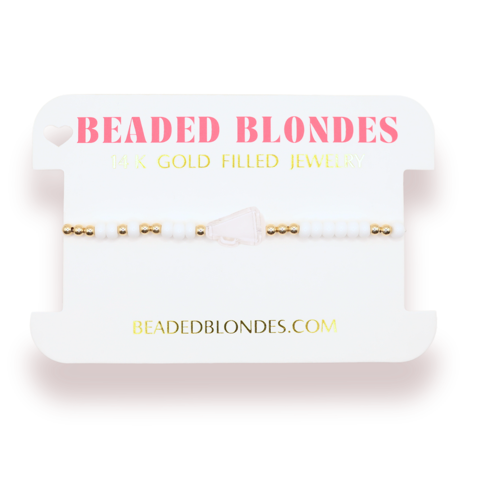 Megaphone cheer beaded bracelet. Our signature 14 K gold filled beaded bracelets with custom made beads.