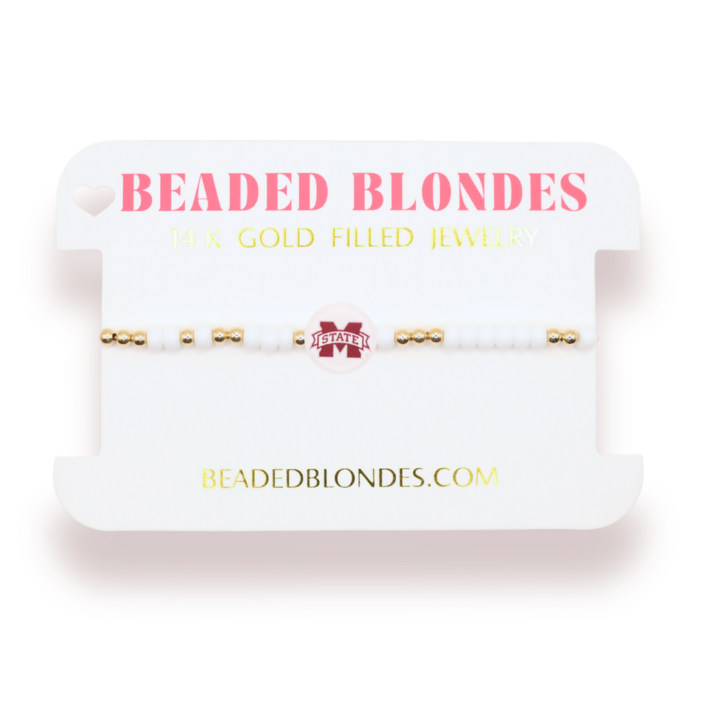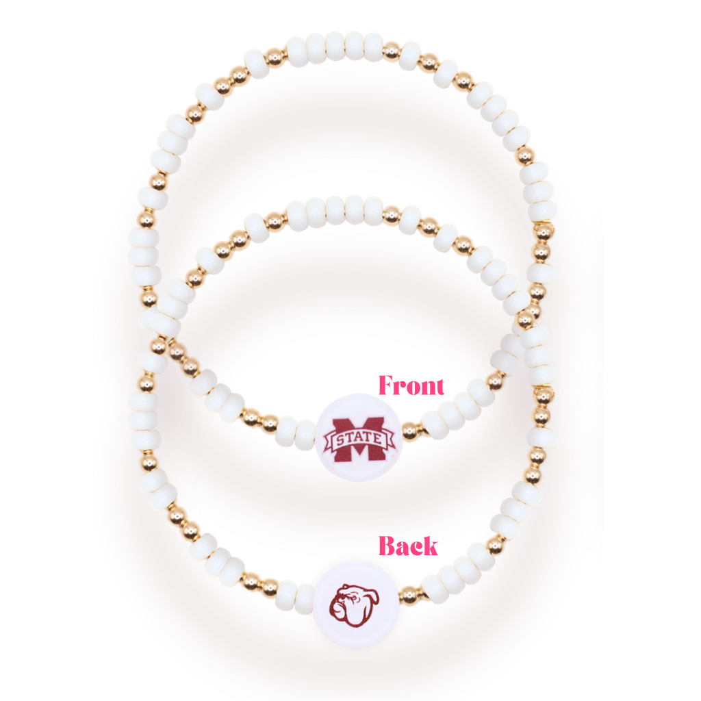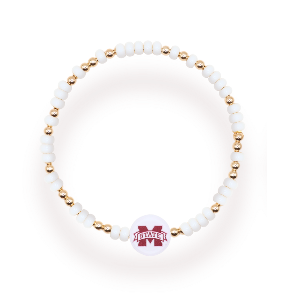 Get ready to support your favorite team in style with the Mississippi State Bracelet! Perfect for game day, this bracelet features unique Mississippi State-themed beads that will be sure to catch everyone's eye. Show off your team spirit and accessorize like a true fan!