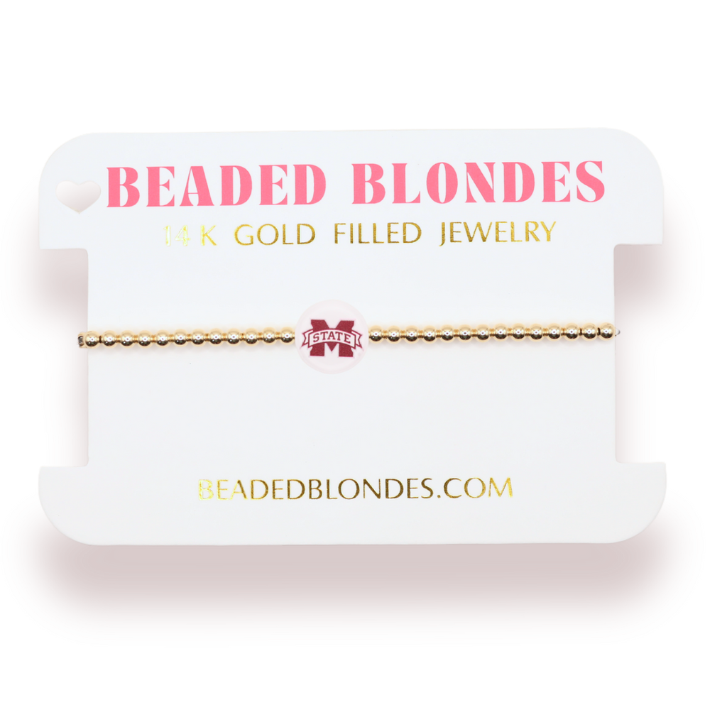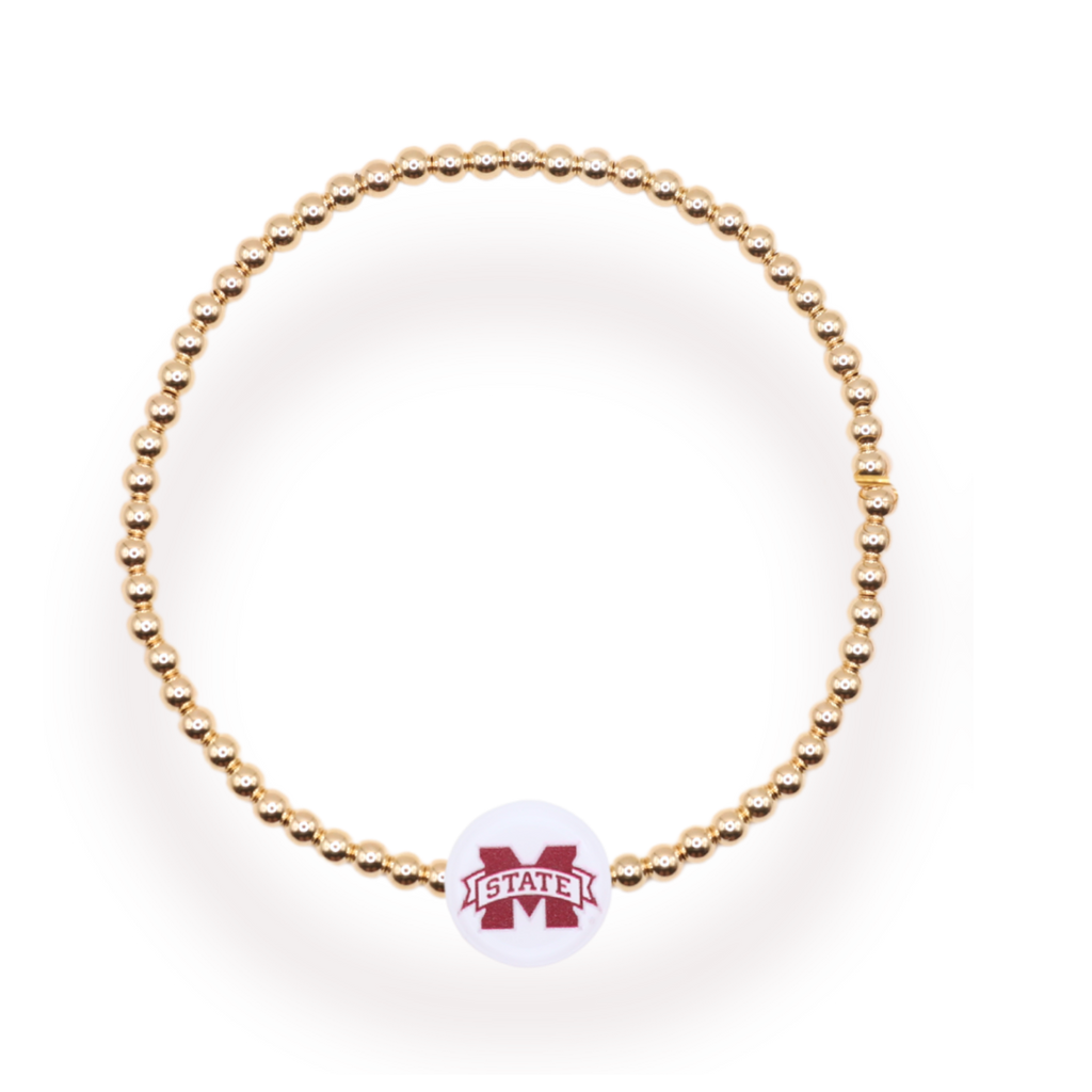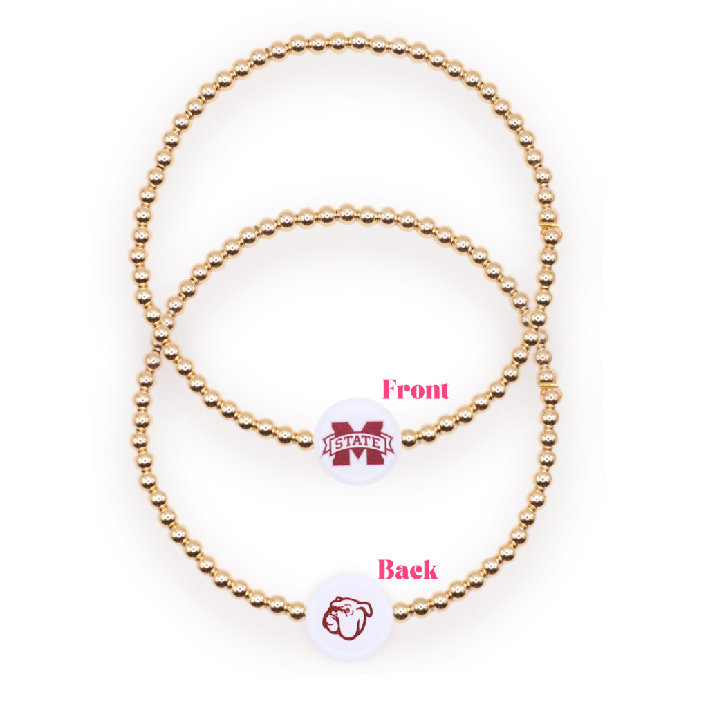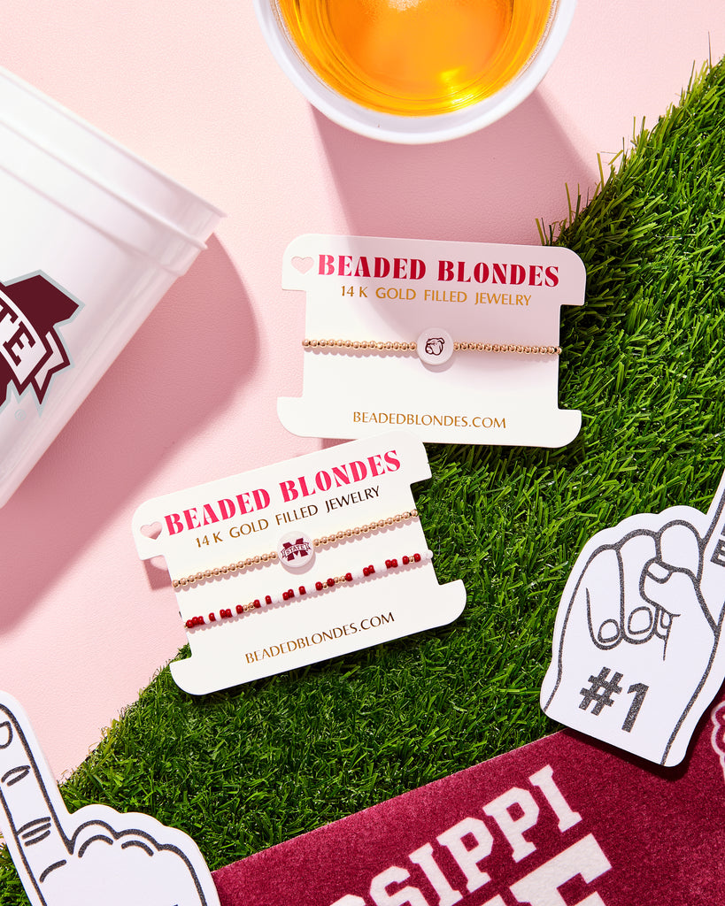 Get ready to support your favorite team in style with the Mississippi State Bracelet! Perfect for game day, this bracelet features unique Mississippi State-themed beads that will be sure to catch everyone's eye. Show off your team spirit and accessorize like a true fan!