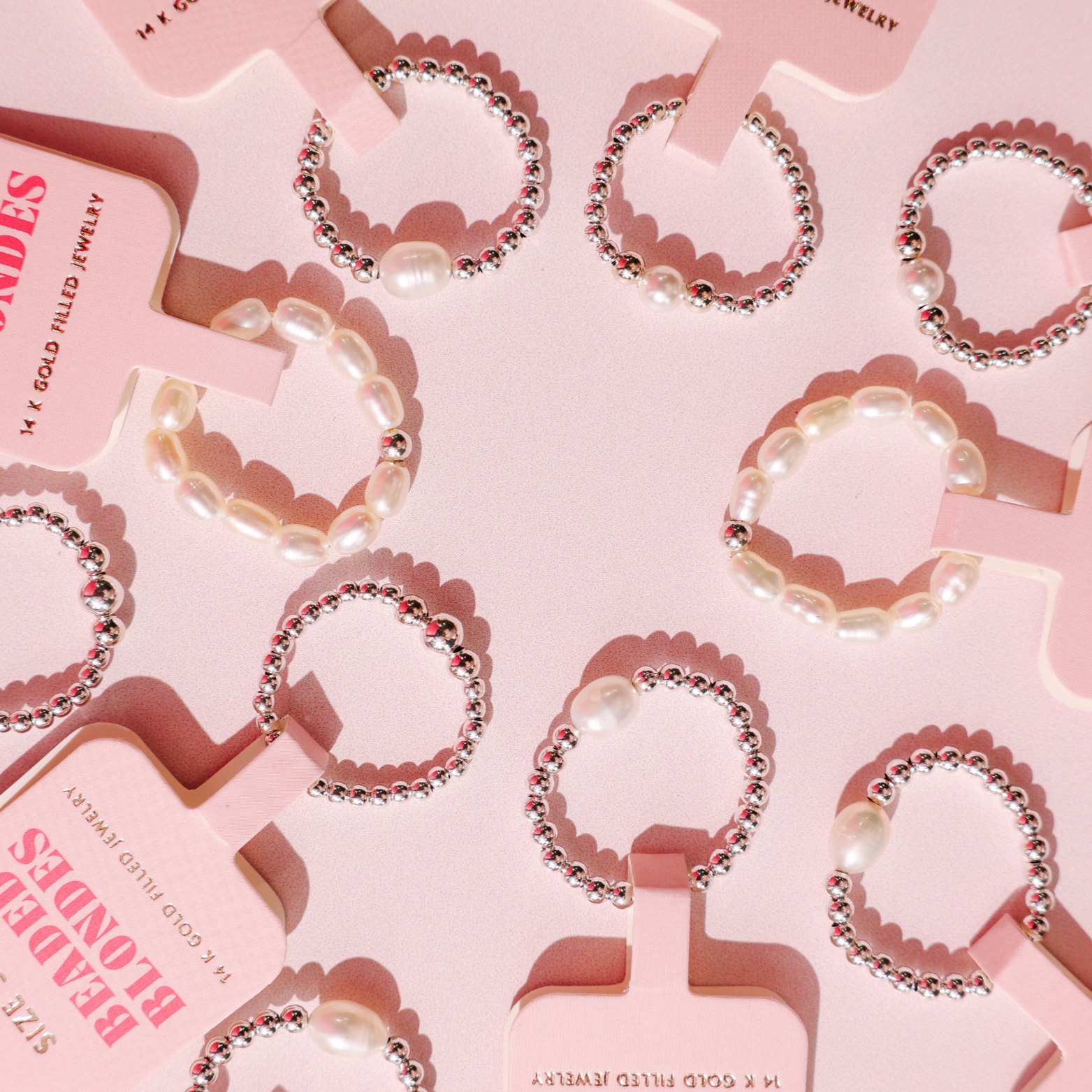 Beaded Blondes mixed metal pieces combine 14K gold filled and sterling silver, designed for everyday wear but needing occasional cleaning to keep silver bright.