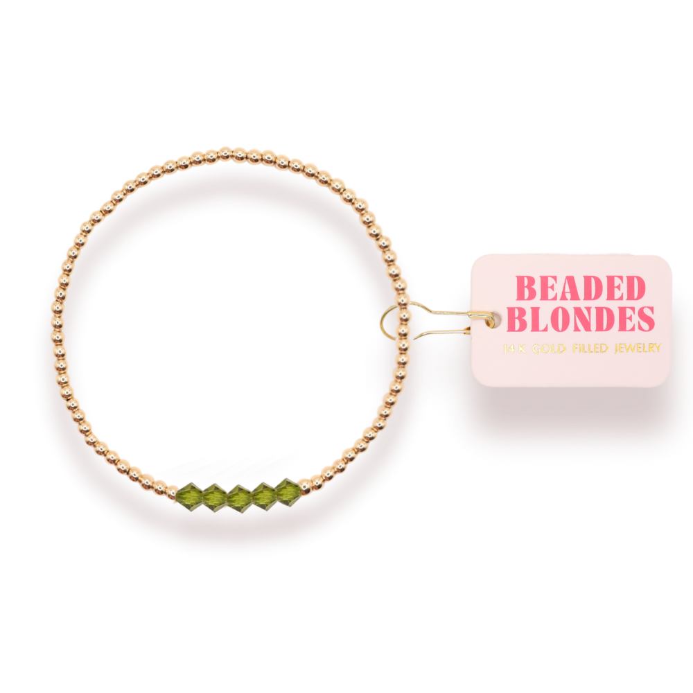 The Kim Swarovski Bracelet is a mix of 2.5MM gold beads + 5 swarovski beads.