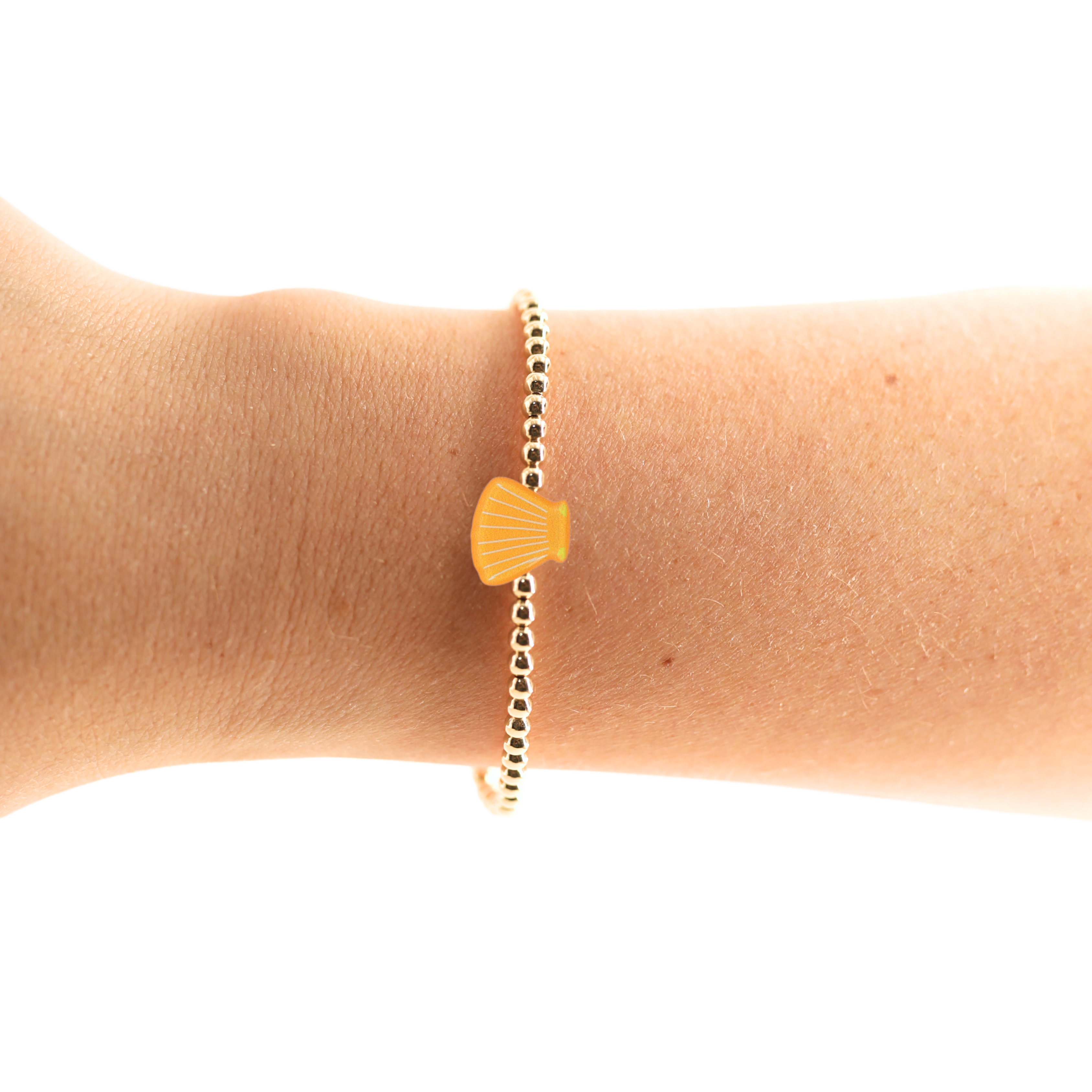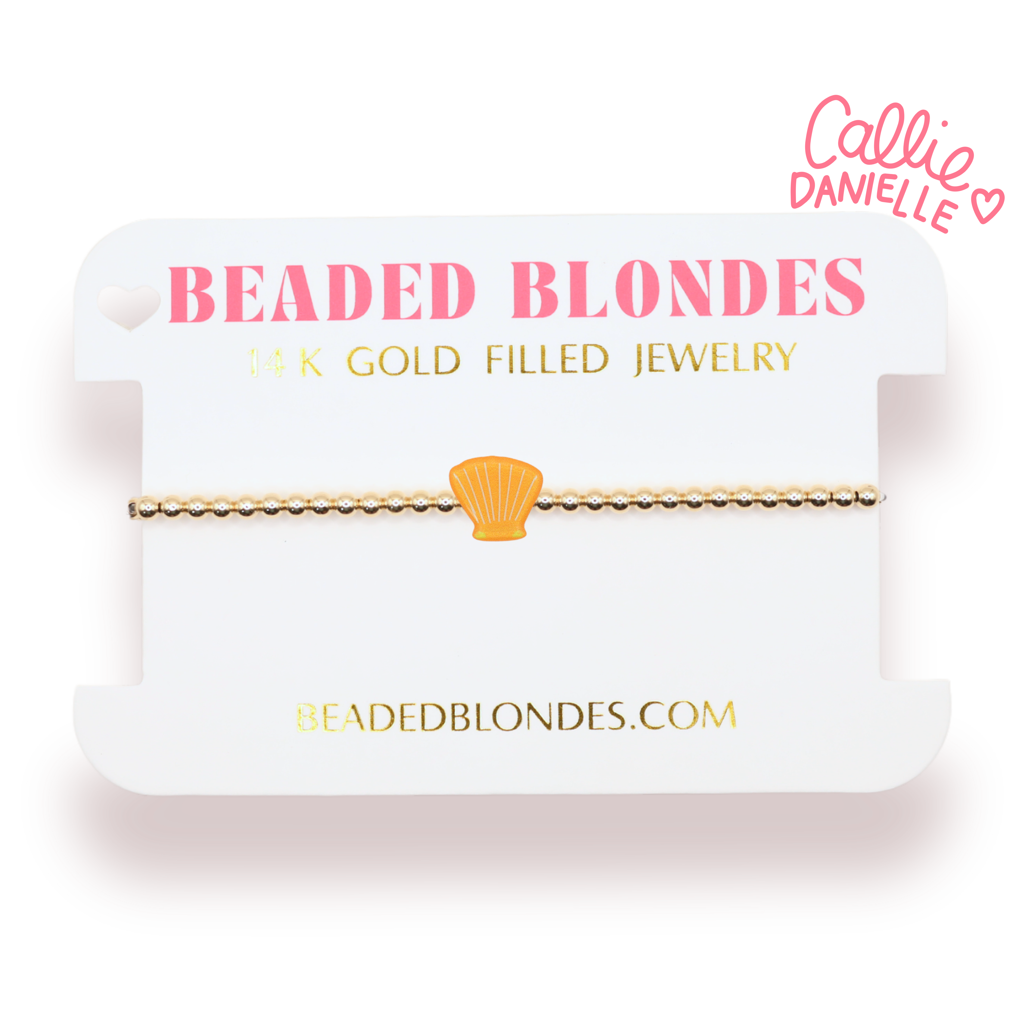 The Orange Shell bracelet is part of the exclusive Beaded Blondes x Callie Danielle collection. Featuring an acrylic bead hand-drawn by Callie herself, it’s a vibrant reminder to spread positivity and sunshine wherever you go. This bracelet is waterproof, beachproof, and sweatproof—making it the perfect accessory for everyday wear!