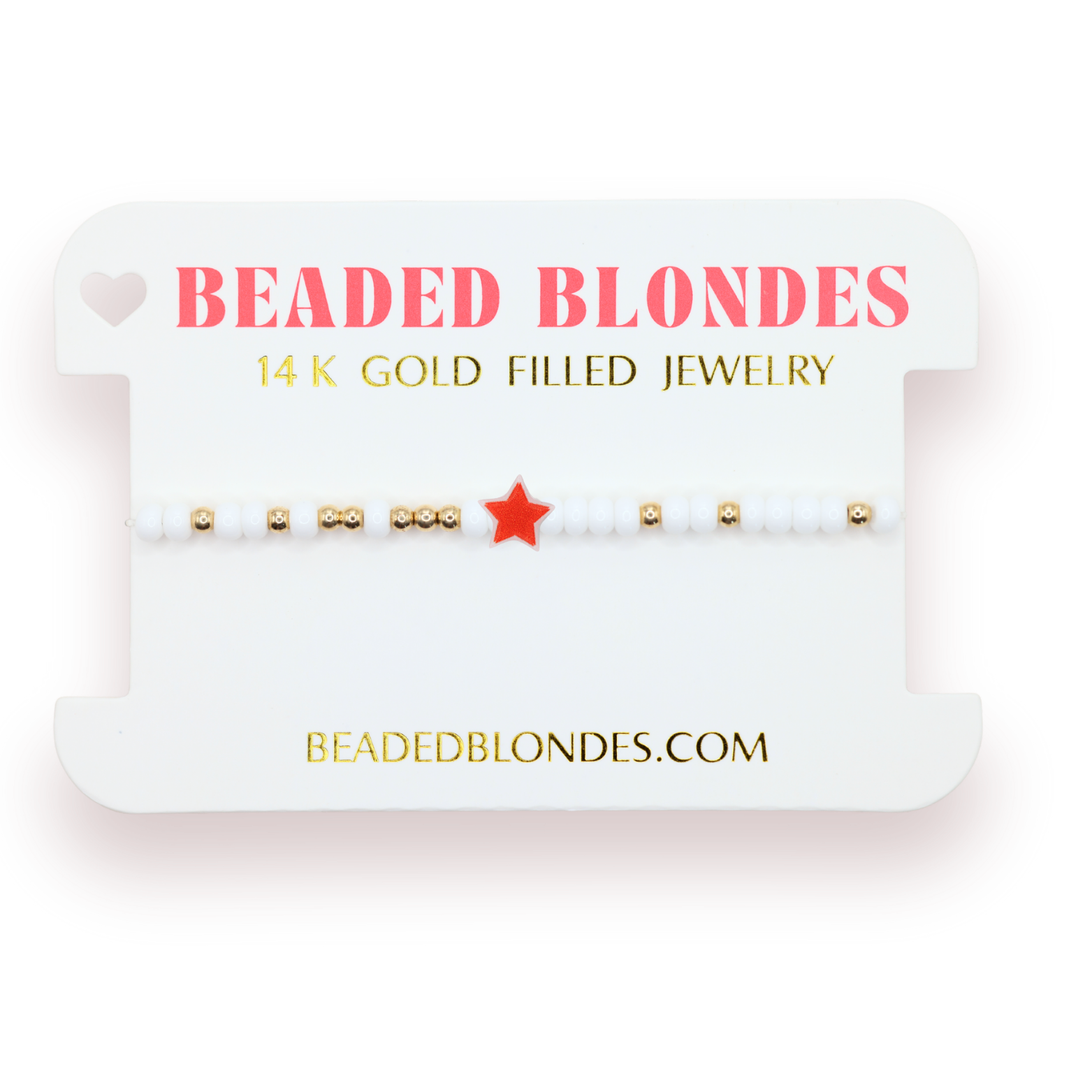 Beaded Blondes gold jewelry is made with 14K gold-filled beads that is waterproof, workout proof & perfect for everyday wear. To preserve its shine, avoid harsh chemicals and gently clean with a soft cloth.