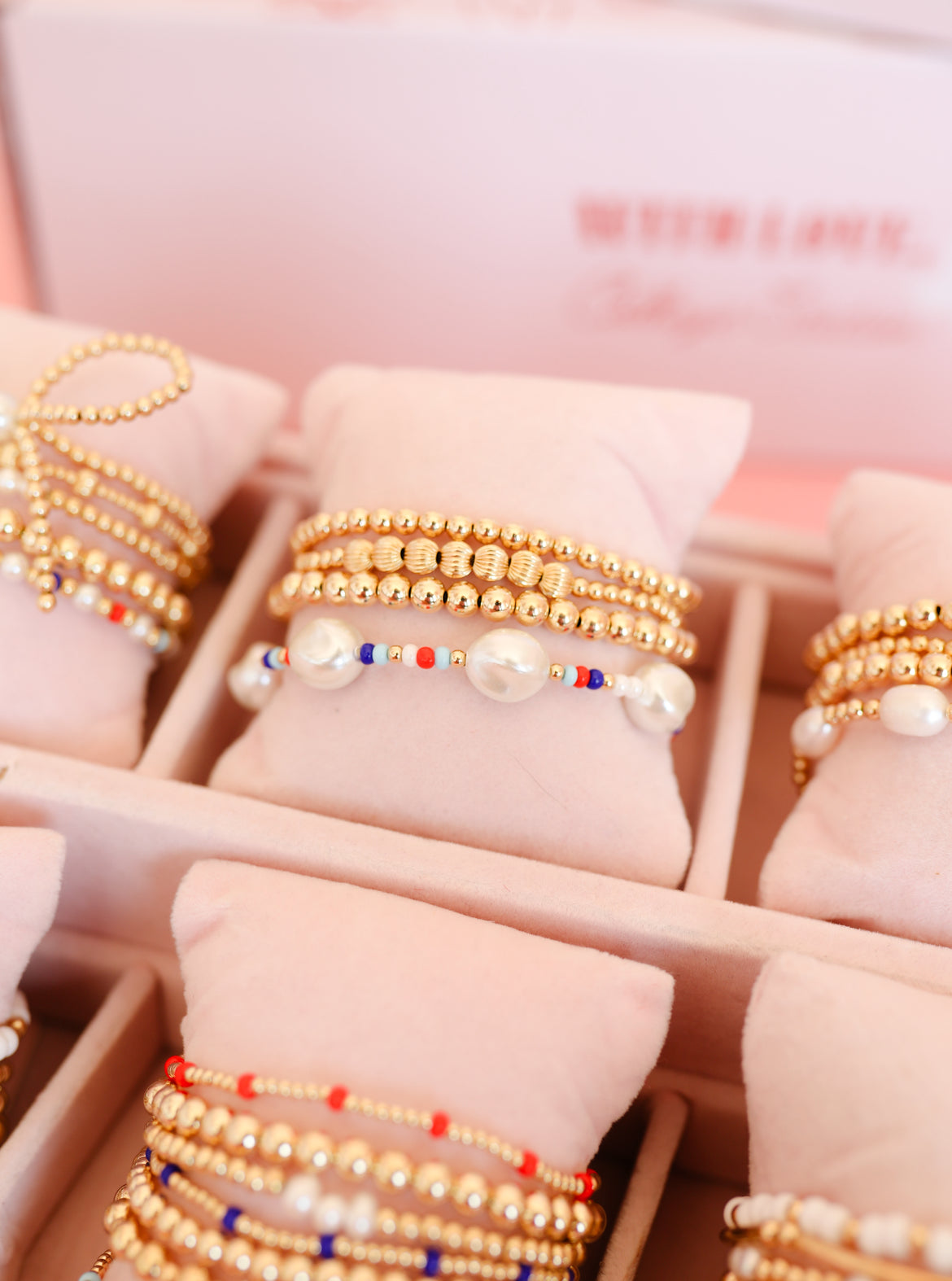 Beaded Blondes offers styles with freshwater and synthetic pearls for timeless elegance. Swarovski pearls feature a crystal core with a durable coating that mimics natural pearls but still require gentle care. Read for full care instructions here.