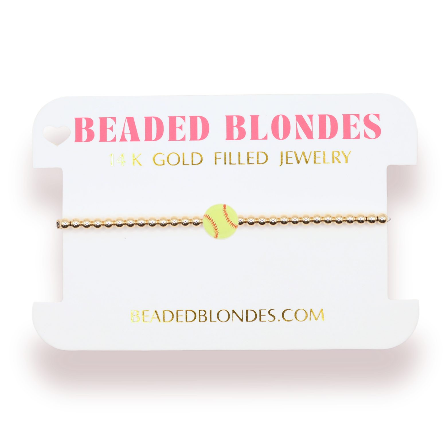 • 3MM gold beaded stretch bracelet with an acrylic bead that will not fade.