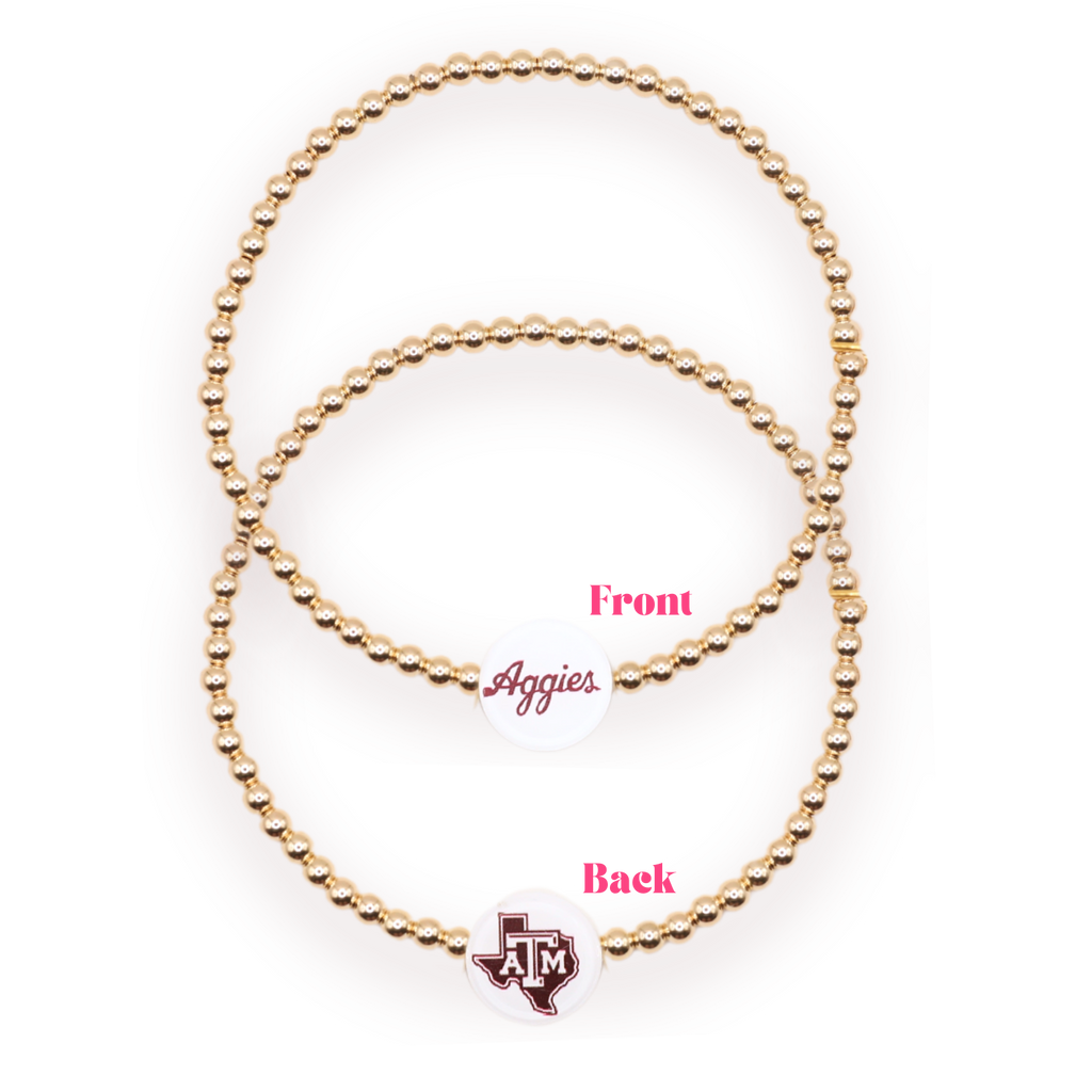 Get ready to support your favorite team in style with our 2 sided CLC Licensed Game day Bracelet! Perfect for game day, this bracelet features unique A&M-themed beads.