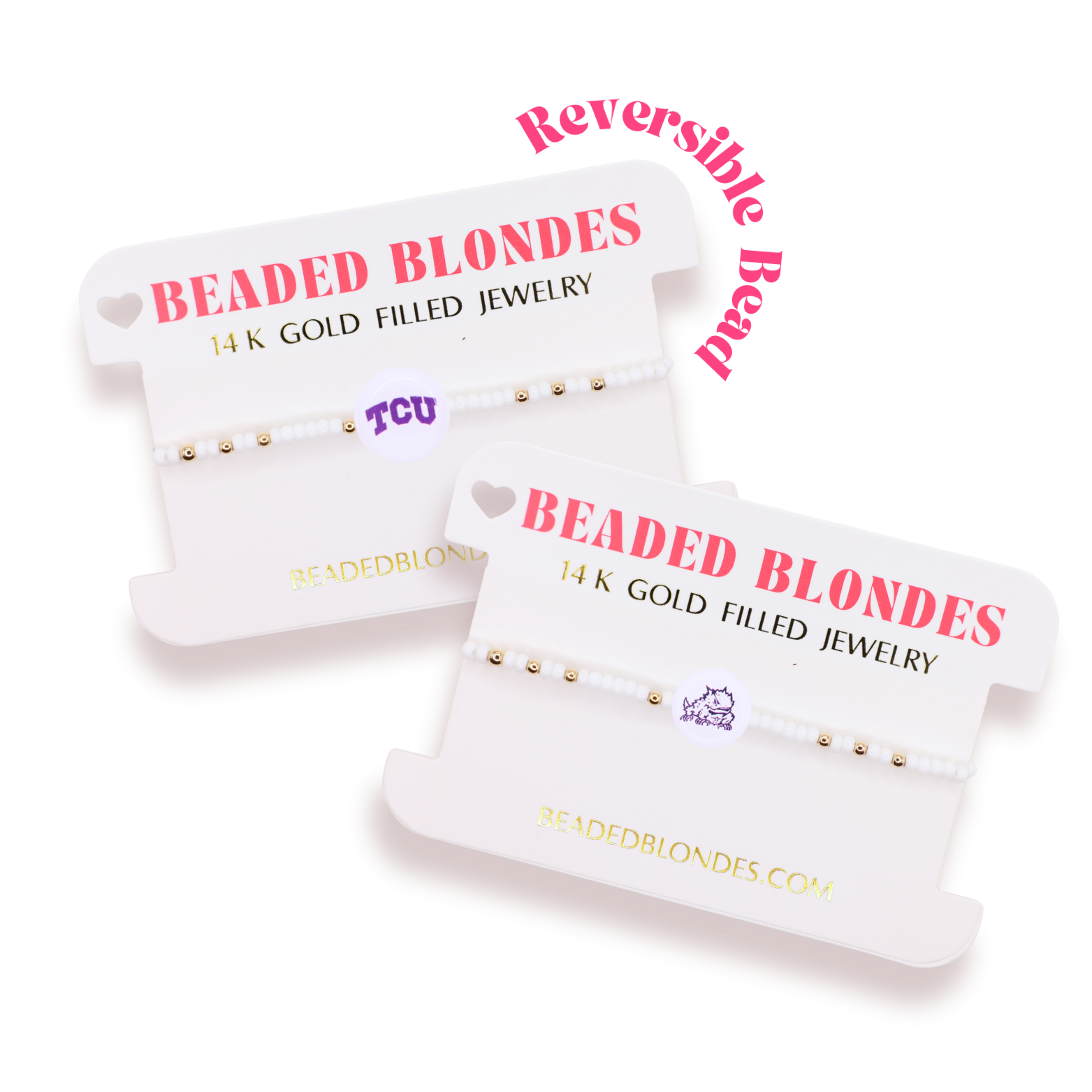 This sprinkle bracelet is a mix of 2.5mm & czech glass beads. The pattern varies on each bracelet making it unique. The bracelet has a Logo flip bead in the center, perfect for supporting your favorite team!