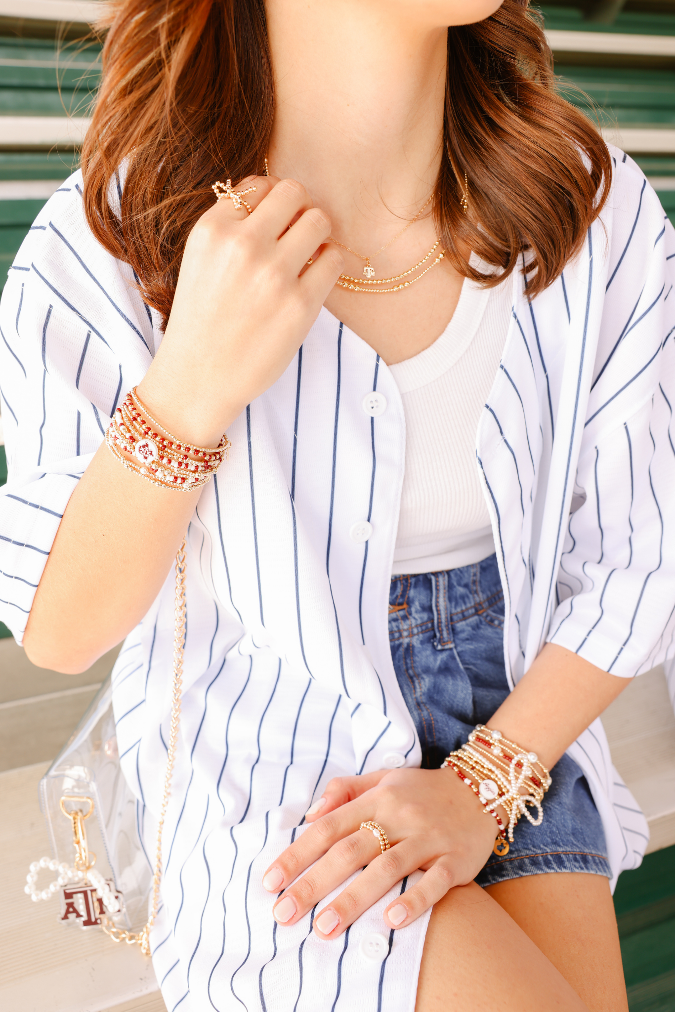 Dress up your bag or boot with this Texas A&M logo charm + our iconic pearl bow