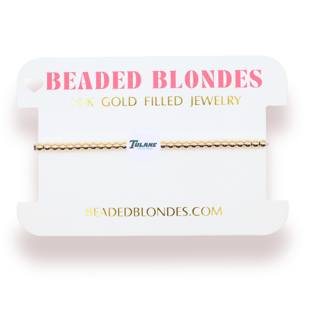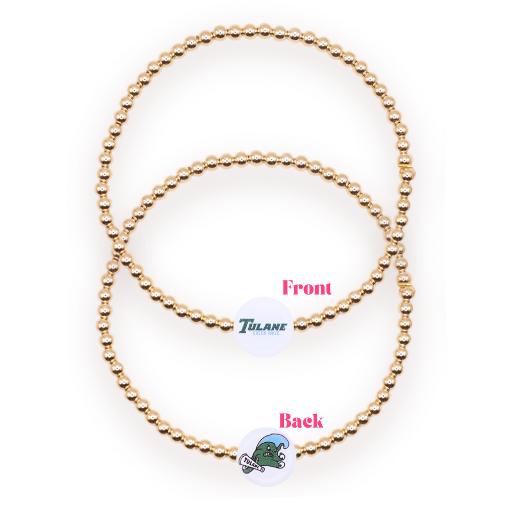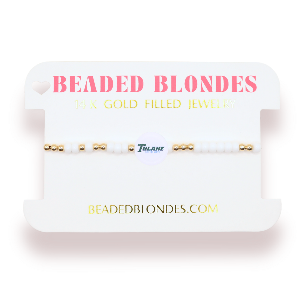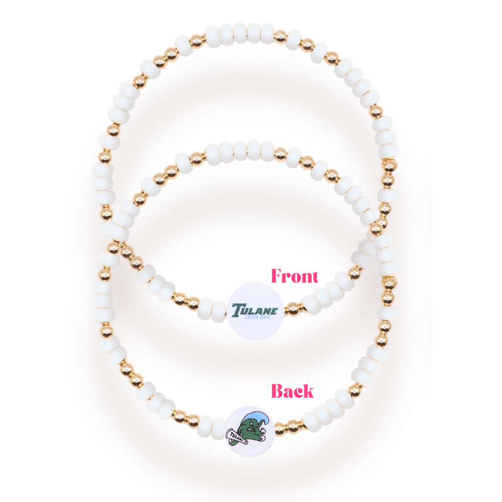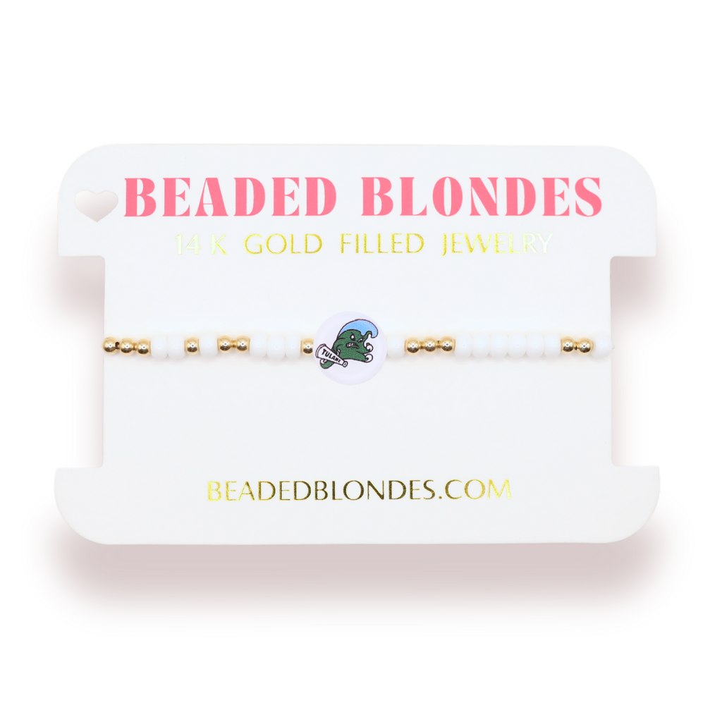 Get ready to support your favorite team in style with the Tulane Bead Bracelet! Perfect for game day, this bracelet features unique Tulane -themed beads that will be sure to catch everyone's eye. Show off your team spirit and accessorize like a true fan!