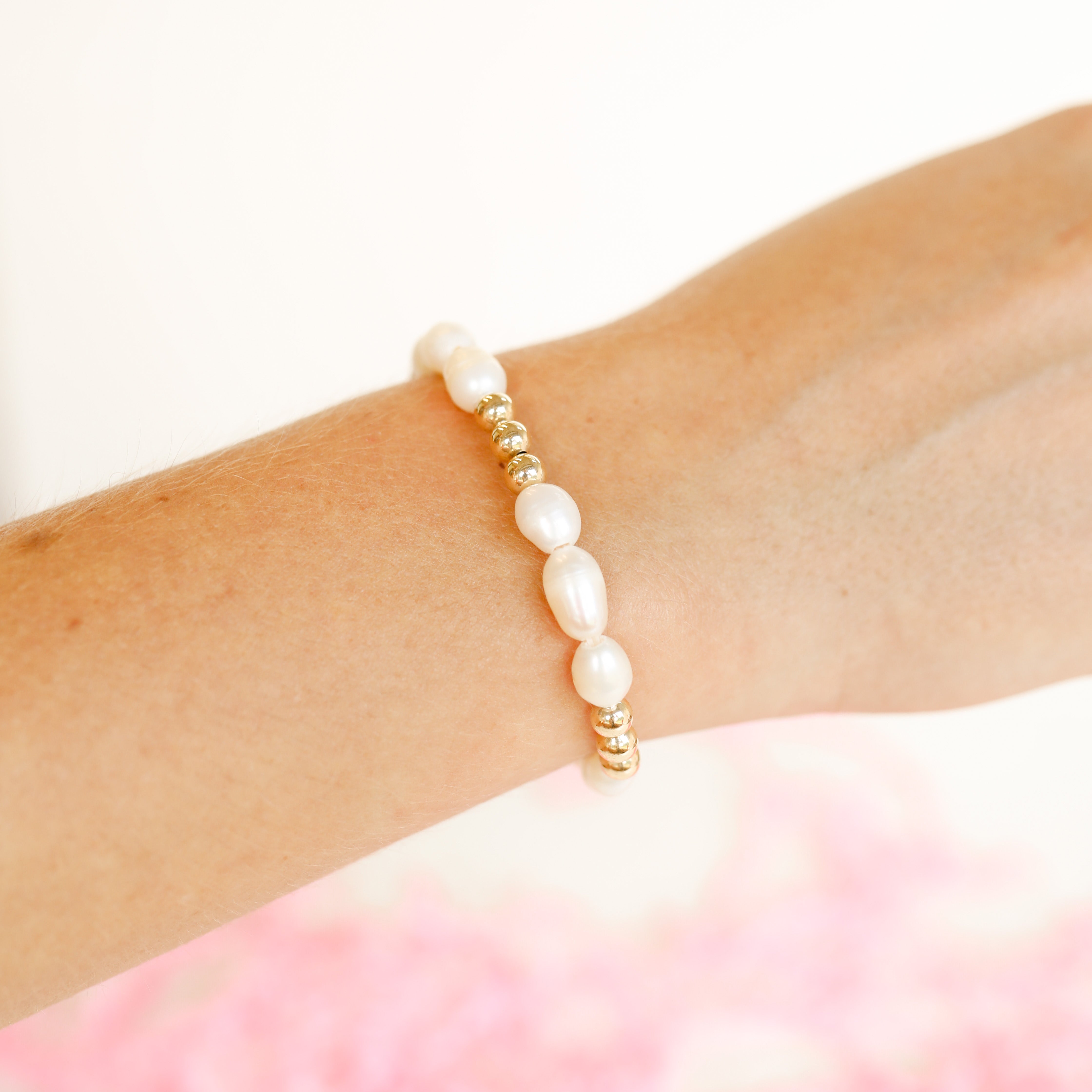 The Willow Pearl bracelet is a mix of 5mm beads & pearls.