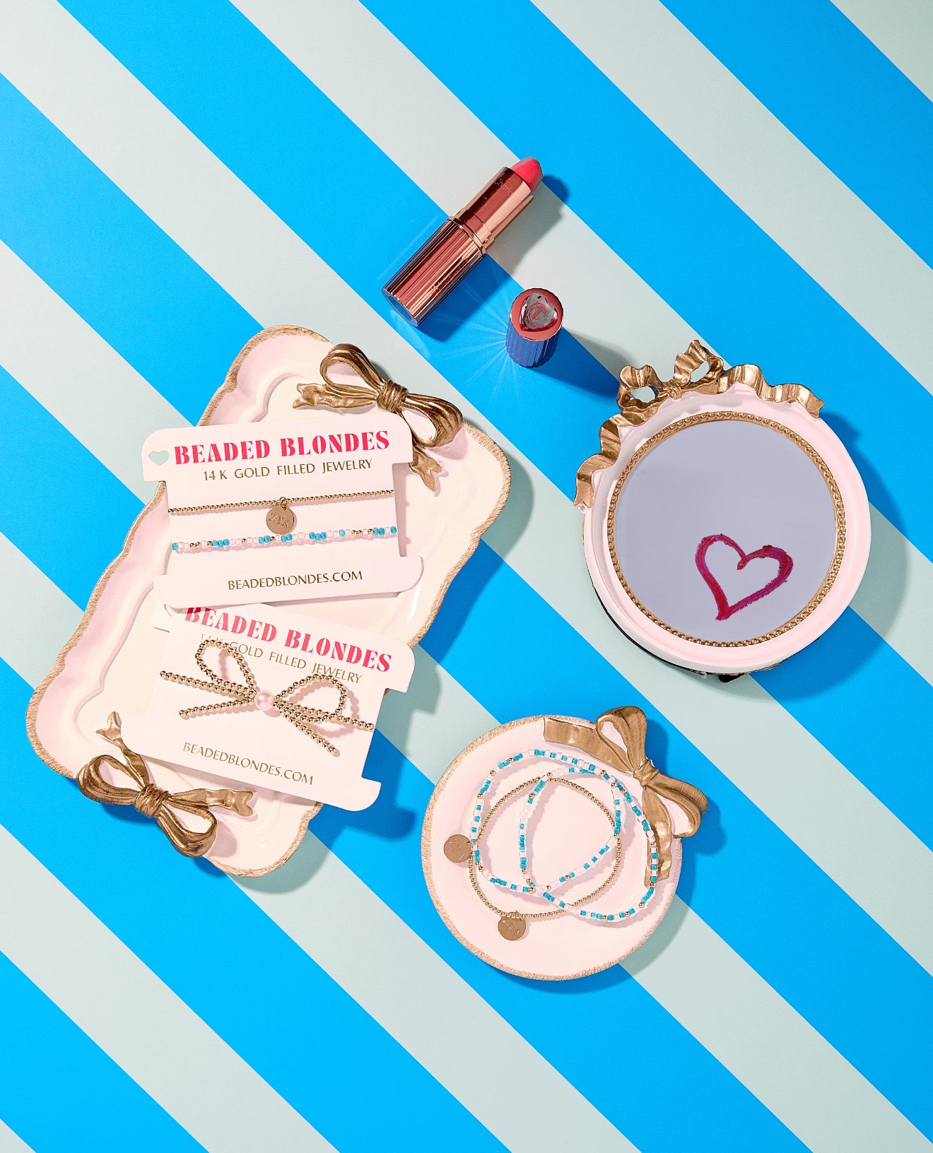 Beaded Blondes gold jewelry is made with 14K gold-filled beads that is waterproof, workout proof & perfect for everyday wear. To preserve its shine, avoid harsh chemicals and gently clean with a soft cloth.